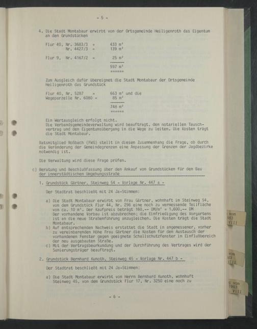 c) Beratung und Beschlußfassung über den Ankauf von Grundstücken für den Bau der innerstädtischen Umgehungsstraße
