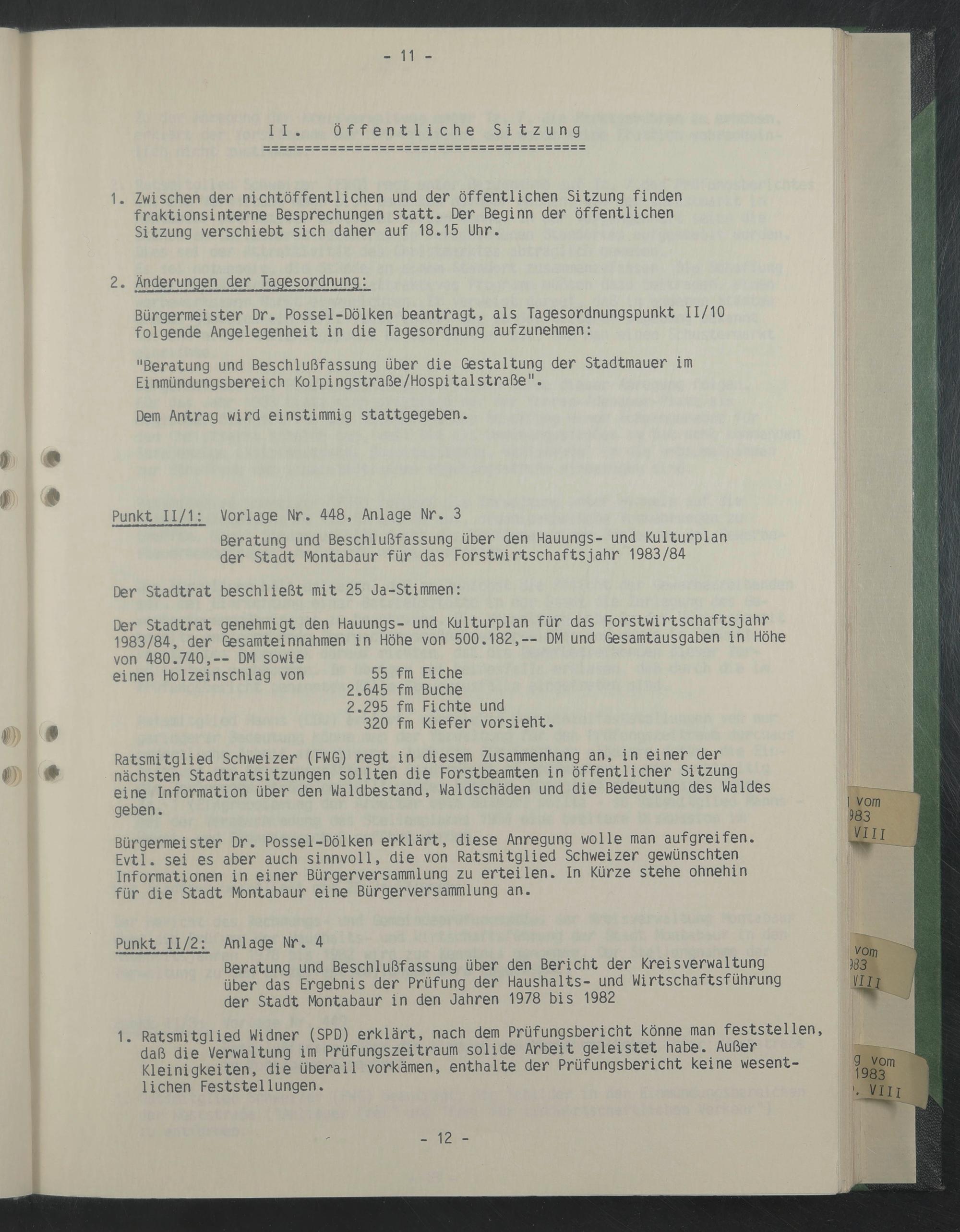 Beratung und Beschlußfassung über den Hauungs- und Kulturplan der Stadt Montabaur für das Forstwirtschaftsjahr 1983/84