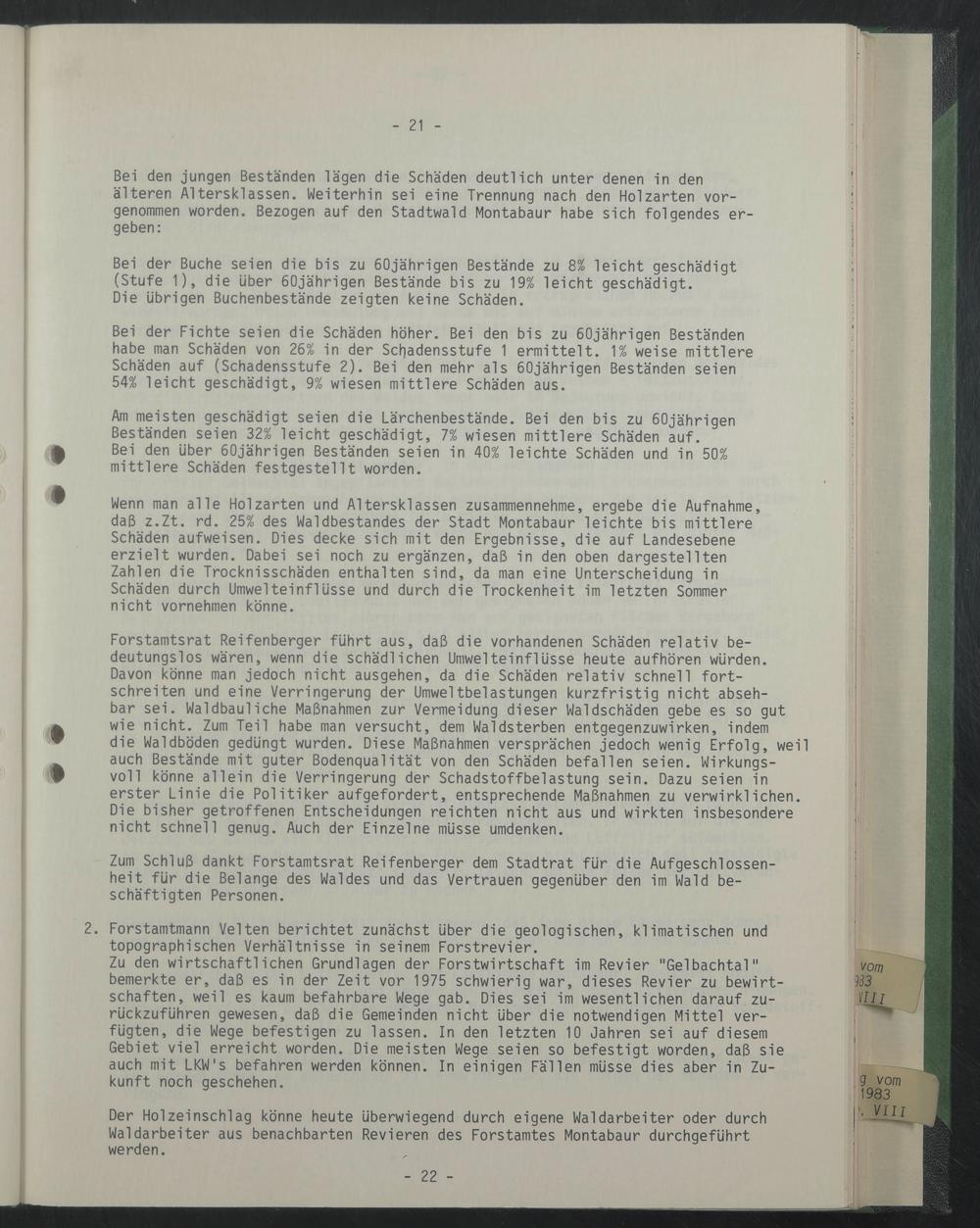 Forstamtsrat Reifenberger führt aus, daß die vorhandenen Schäden relativ bedeutungslos wären, wenn die schädlichen Umwelteinflüsse heute aufhören würden.