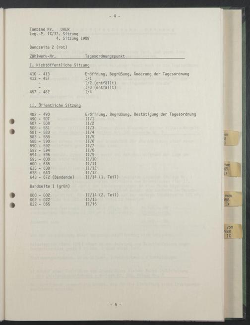 Tonband Nr. UHER Leg.-P. IX/37. Sitzung