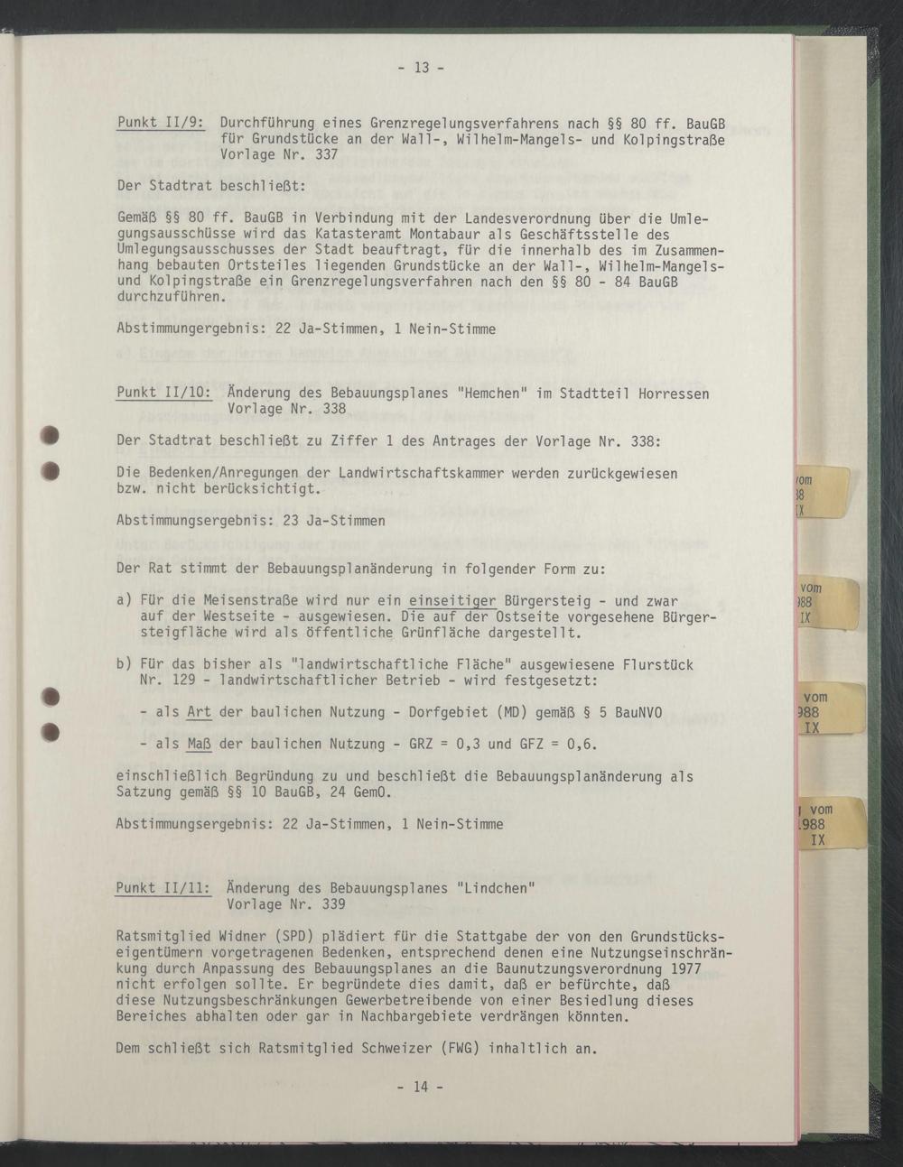 Punkt 11/10: Änderung des Bebauungsplanes "Hemchen" im Stadtteil Horressen Vorlage Nr. 338