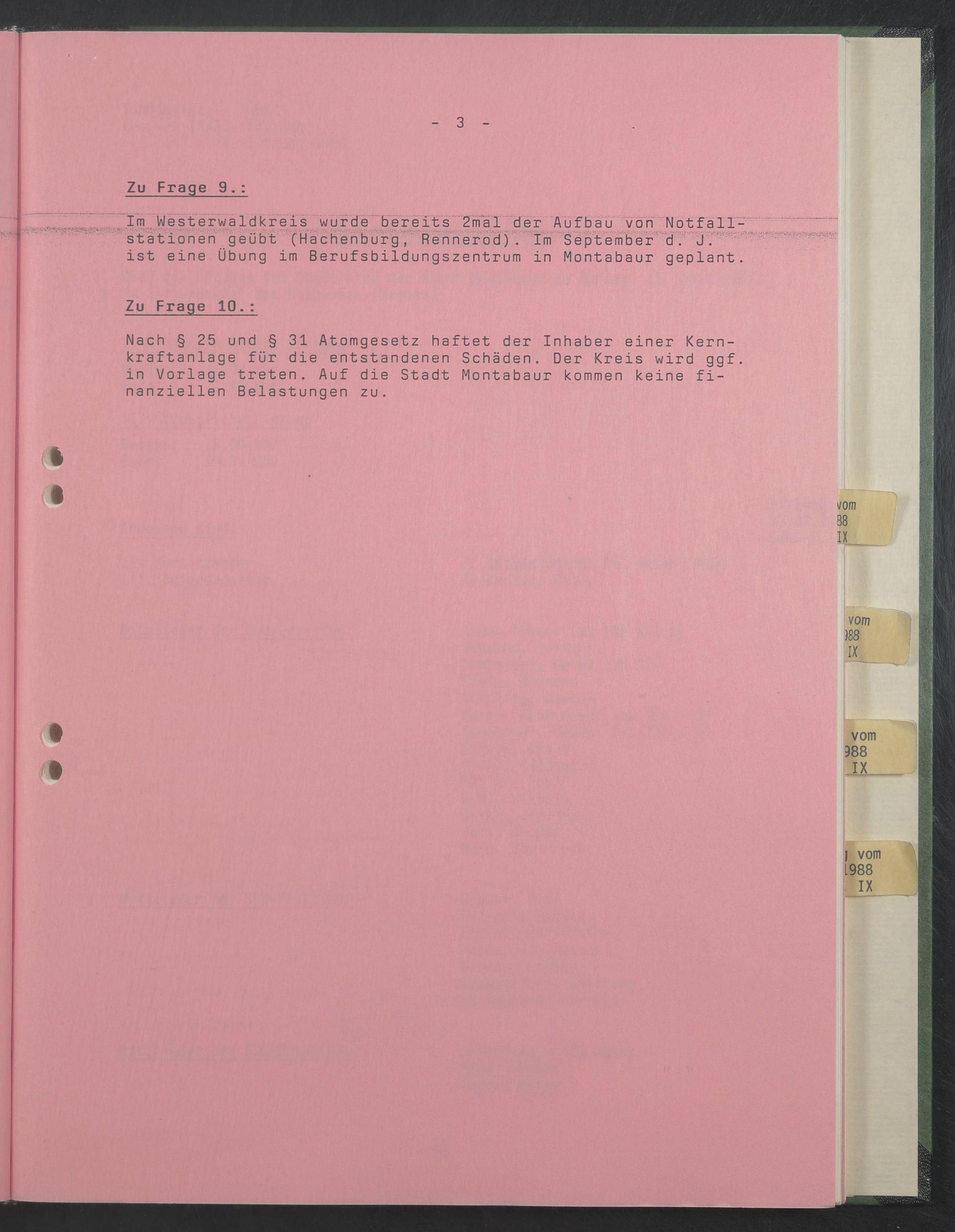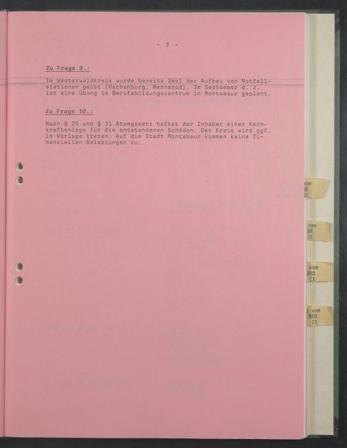 Nach § 25 und § 31 Atomgesetz haftet der Inhaber einer Kernkraftanlage für die entstandenen Schäden. Der Kreis wird ggf. in Vorlage treten. Auf die Stadt Montabaur kommen keine finanziellen Belastungen zu.