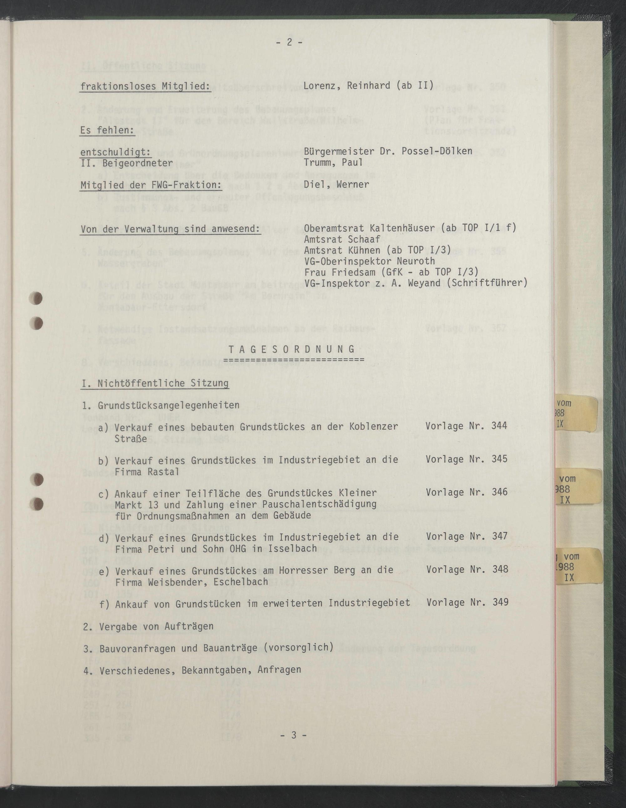 Von der Verwaltung sind anwesend: Oberamtsrat Kaltenhäuser (ab TOP 1/1 f)