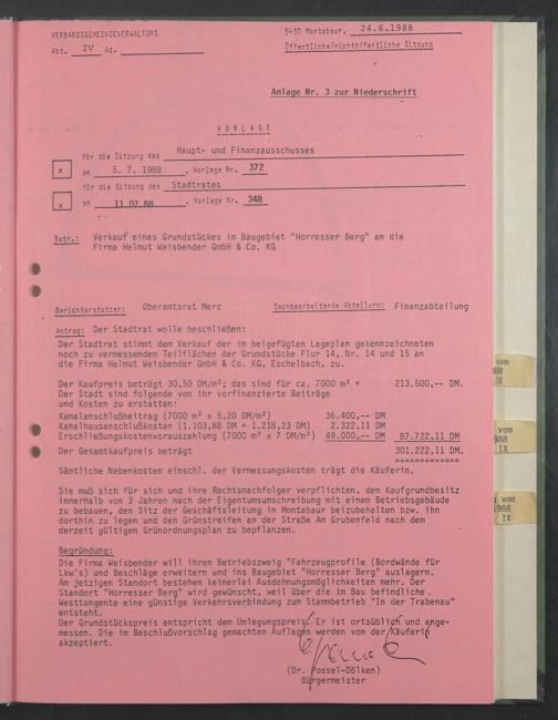 ' . Der Kaufpreis beträgt 30,50 DM/m^; das sind für ca. 7000 m^ = 213.500,-- DM.
