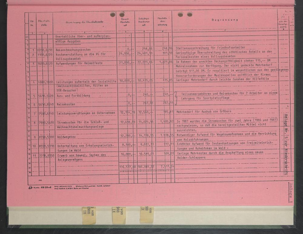 Aufwendungen fUr Heimatfeste