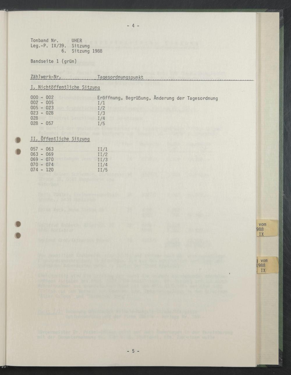 Tonband Nr. UHER Leg.-P. IX/39. Sitzung