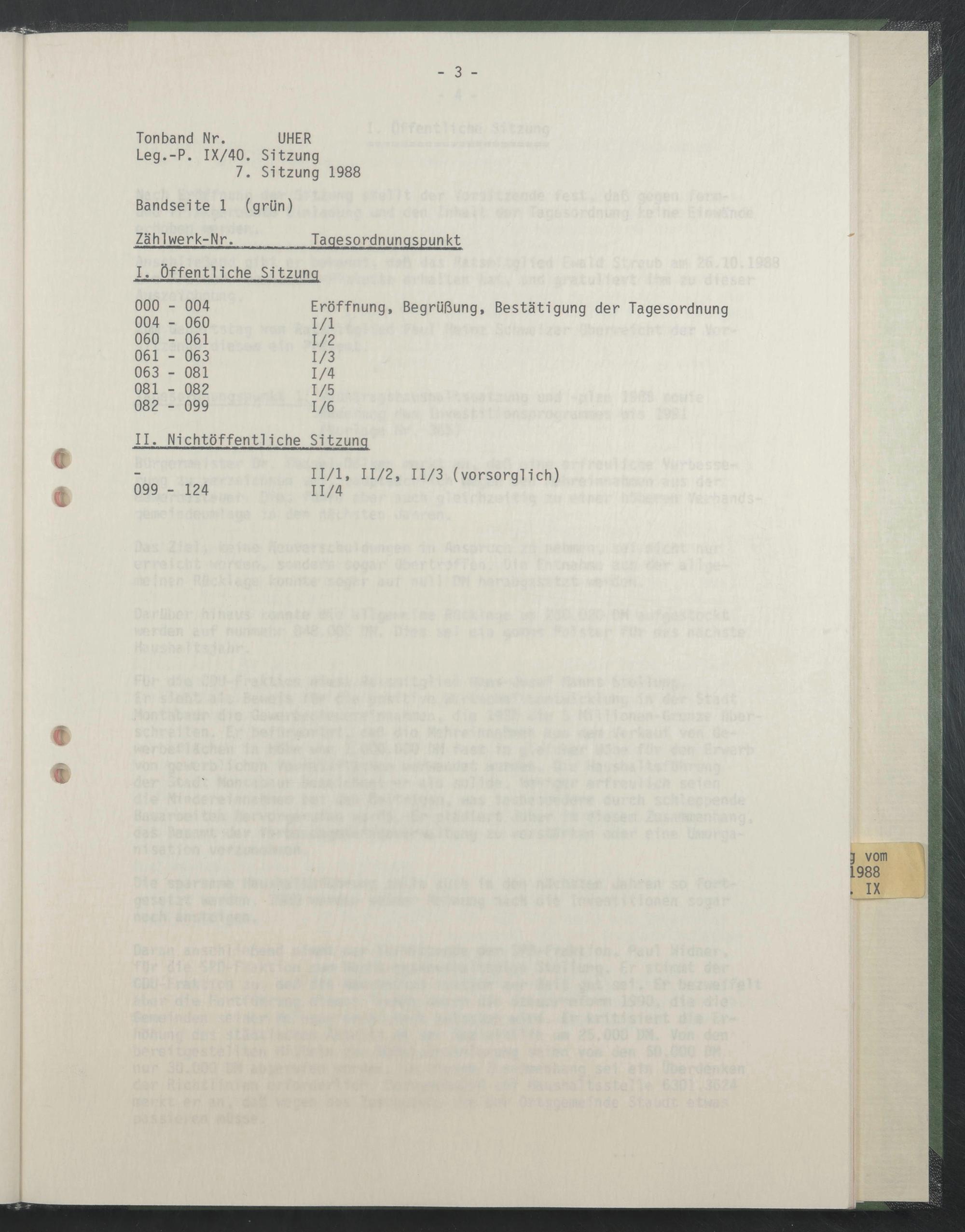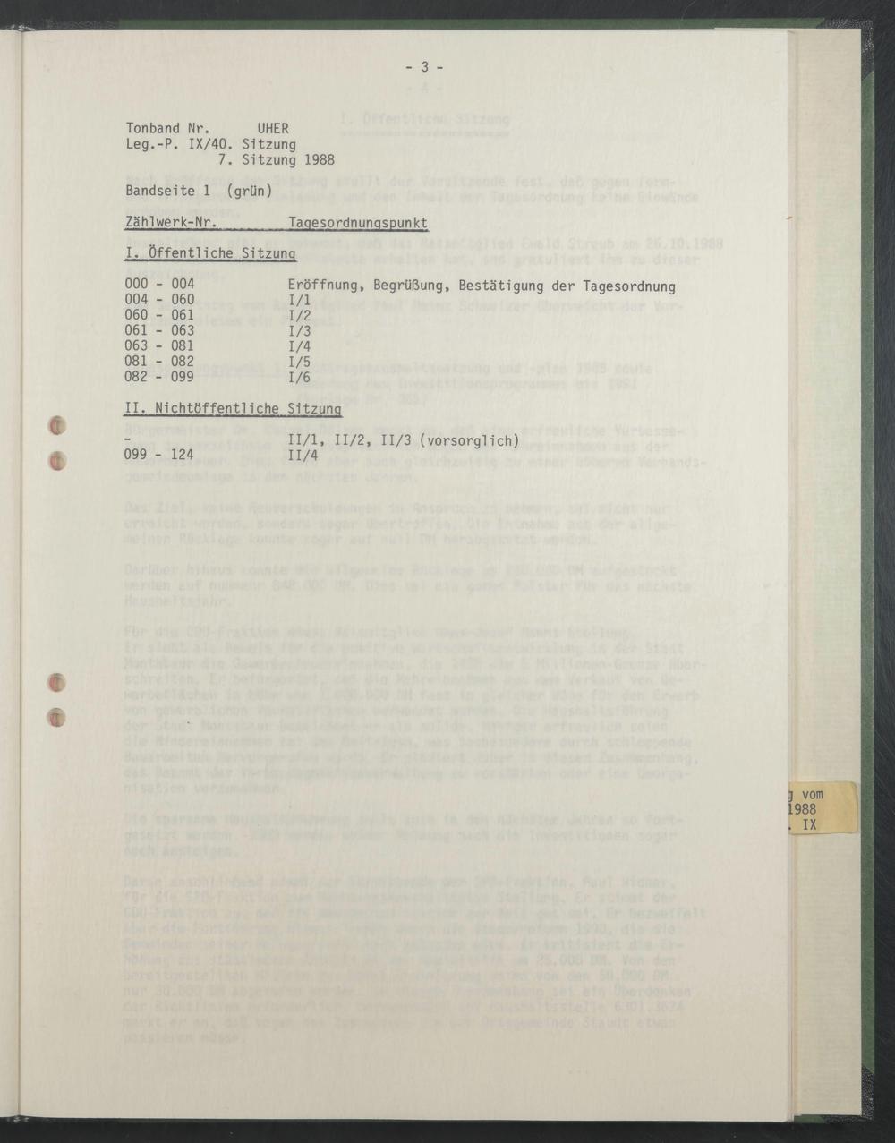 Tonband Nr. UHER Leg.-P. IX/40. Sitzung