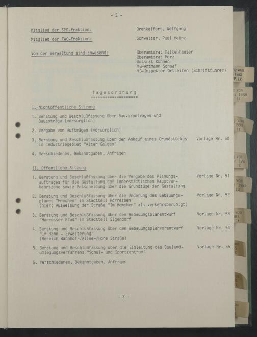 Von der Verwaltung sind anwesend: Oberamtsrat Kaltenhäuser