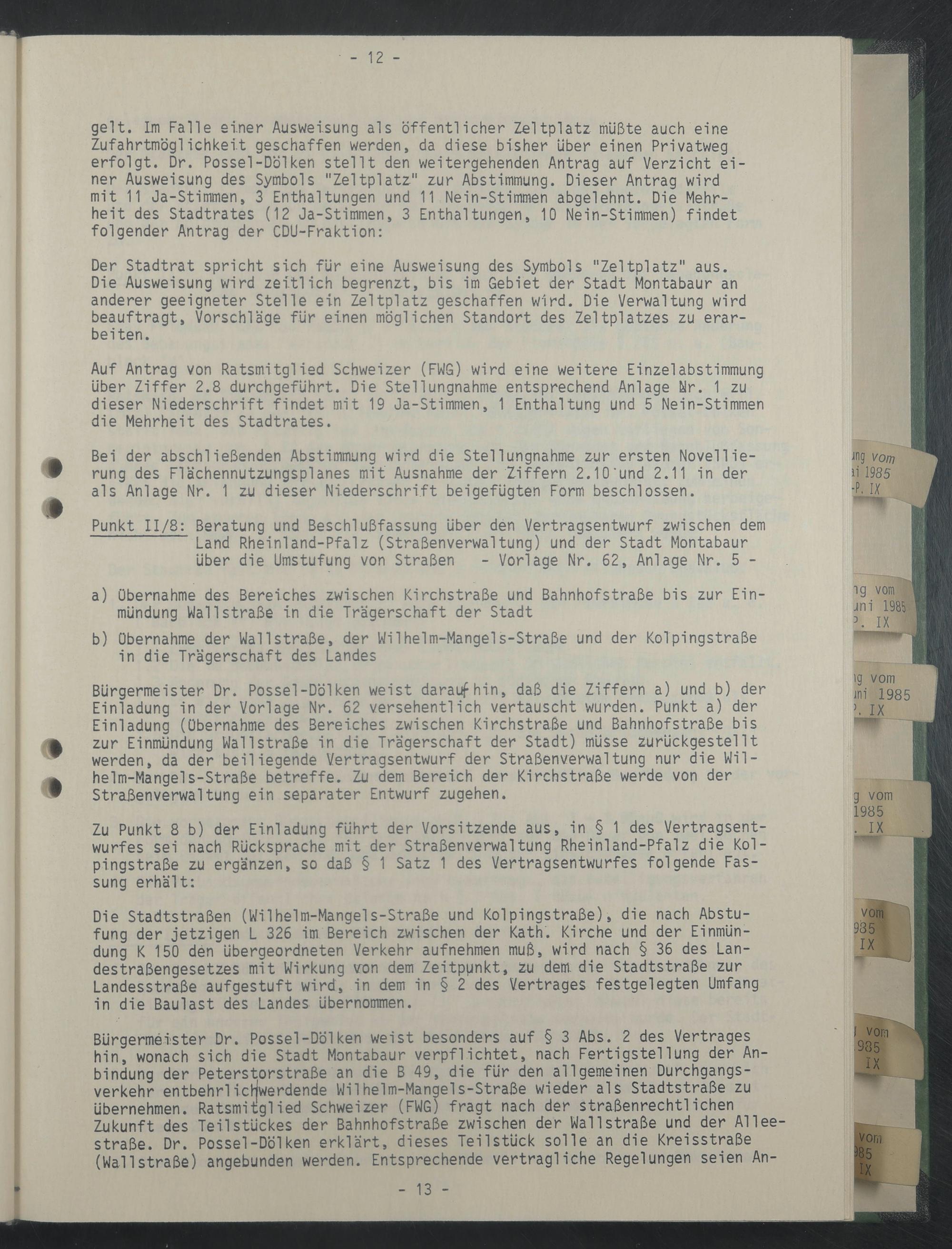 Punkt 11/8: Beratung und Beschlußfassung über den Vertragsentwurf zwischen dem Land Rheinland-Pfalz (Straßenverwaltung) und der Stadt Montabaur Uber die Umstufung von Straßen - Vorlage Nr. 62, Anlage Nr. 5 -