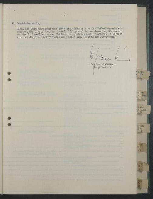 Gemäß dem Empfehlungsbeschluß der Fachausschüsse wird der Verbandsgemeinderat ersucht, die Darstellung des Symbols "Zeltplatz" in der Gemarkung Wirzenborn aus der 1. Novellierung des Flächennutzungsplanes herauszunehmen. Im übrigen wird den die Stadt betreffenden Änderungen bzw. Ergänzungen zugestimmt.