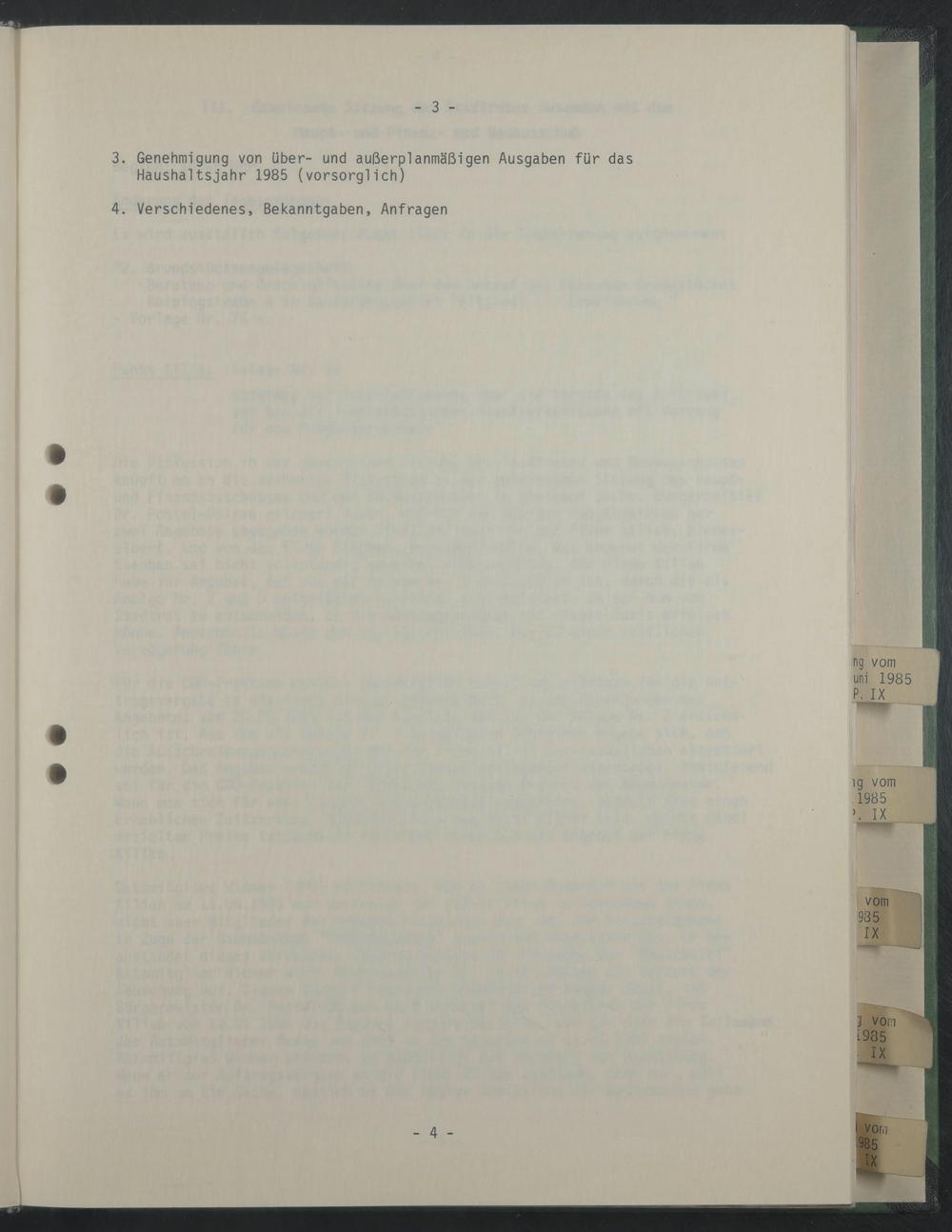 3. Genehmigung von über- und außerplanmäßigen Ausgaben für das Haushaltsjahr 1985 (vorsorglich)