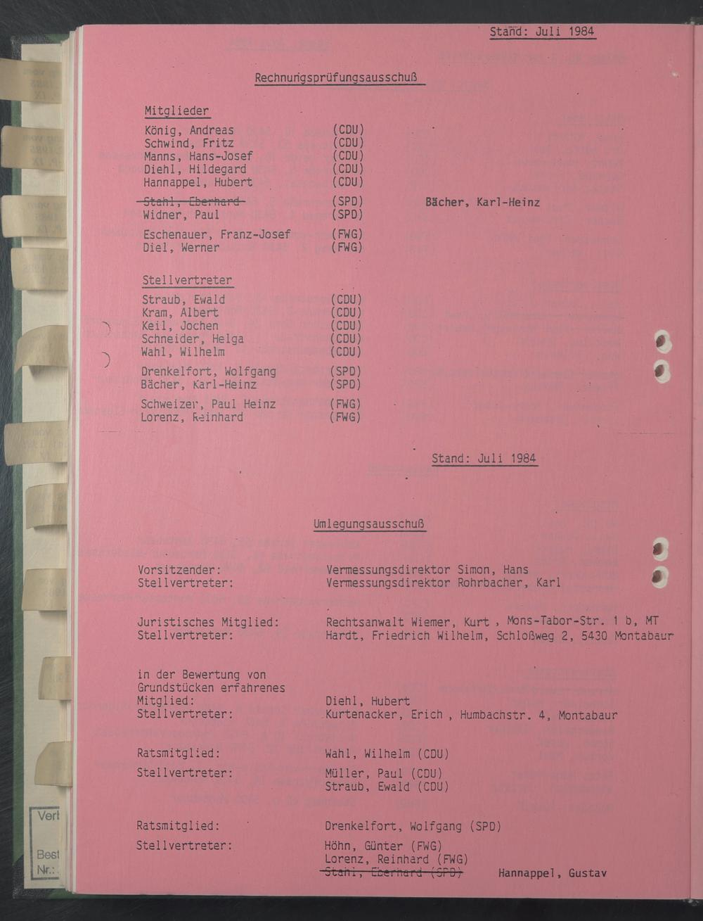 Stand: Juli 1984