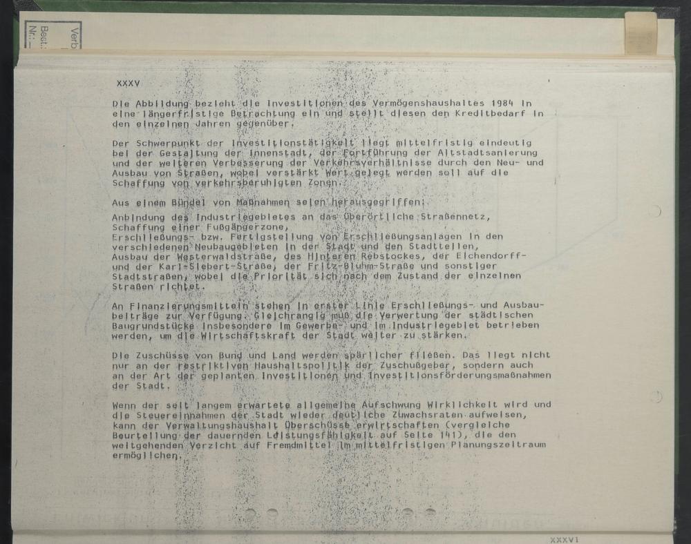 Die Ahhl 1 eht;^dt^ InvestltldAeA^dee Vermögenshaushaltes 1984 ln