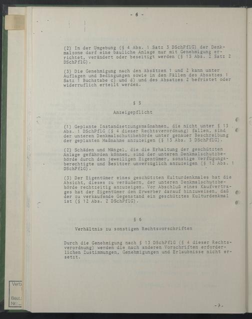 (1) Geplante Instandsetzungsmaßnahmen, die nicht unter § 13 . Abs. 1 DSchPflG (§ 4 dieser Rechtsverordnung) fallen, sind # der unteren Denkmalschutzbehörde unter genauer Beschreibung der geplanten Maßnahme anzuzeigen (§ 13 Abs. 3 DSchPflG).