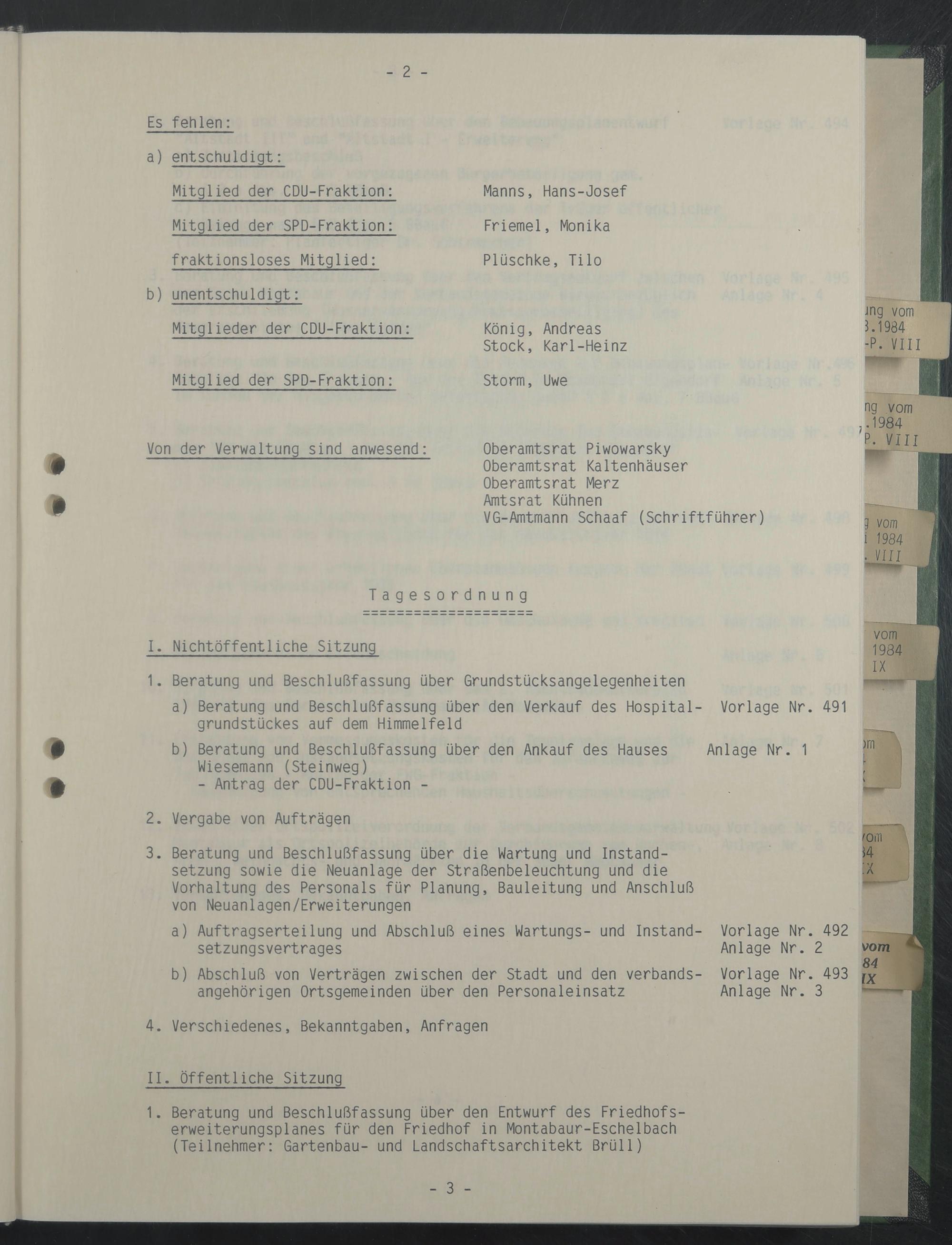 Von der Verwaltung sind anwesend: