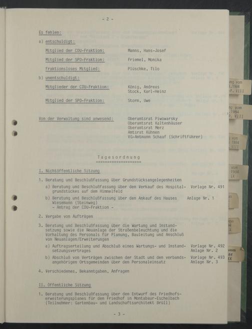 1. Beratung und Beschlußfassung über den Entwurf des Friedhofserweiterungsplanes für den Friedhof in Montabaur-Eschelbach (Teilnehmer: Gartenbau- und Landschaftsarchitekt Brüll)