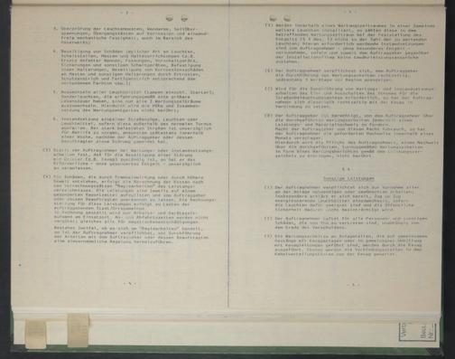 (1) Der Auftragnehmer verpflichtet sich zur Vornahme aller an der Anlage notwendigen oder gewünschten Arbeiten; insbesondere erklärt er sich bereit, Zug um Zug energiesparende Leuchtmi'tte! einzuwechseln, sofern die Leuchten dafür geeignet sind und die öffentiiche Sicherheit dadurch nicht beeinträchtigt wird.