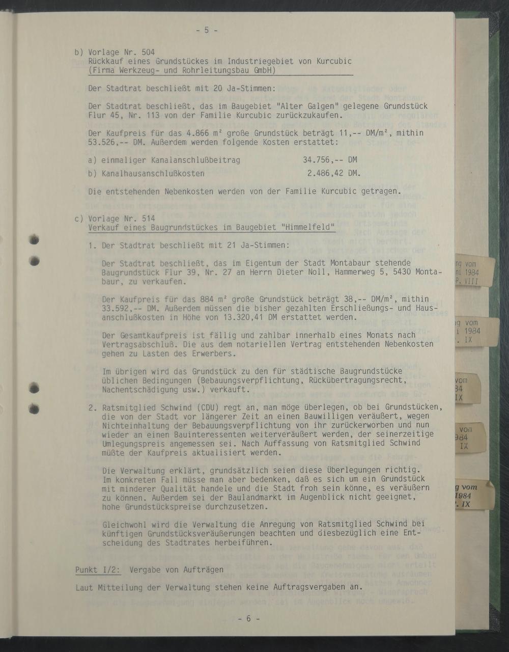 Baugrundstück Flur 39, Nr. 27 an Herrn Dieter Noll, Hammerweg 5, 5430 Monta- mi 1984