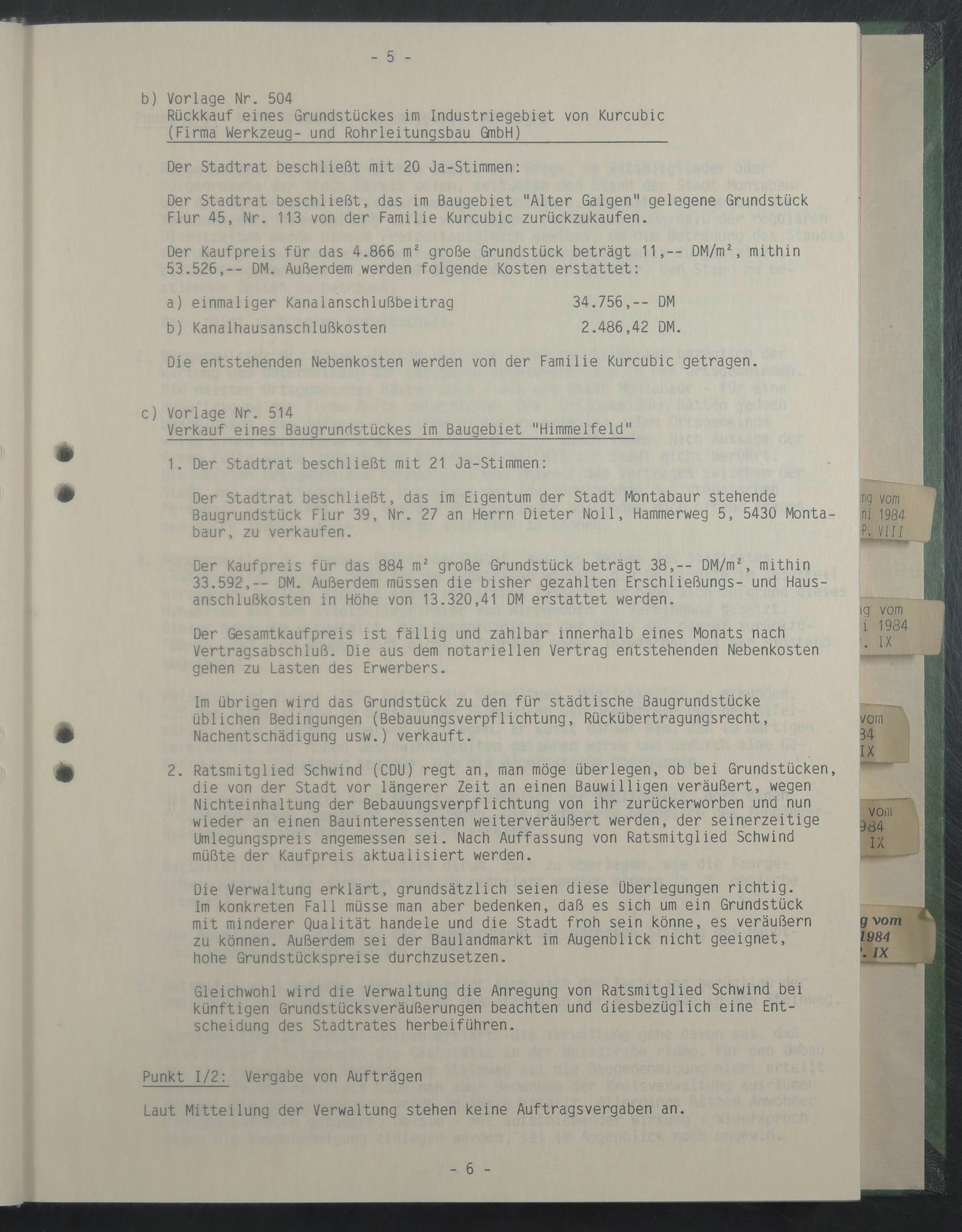 Rückkauf eines Grundstückes im Industriegebiet von Kurcubic (Firma Werkzeug- und Rohrleitungsbau GmbH)