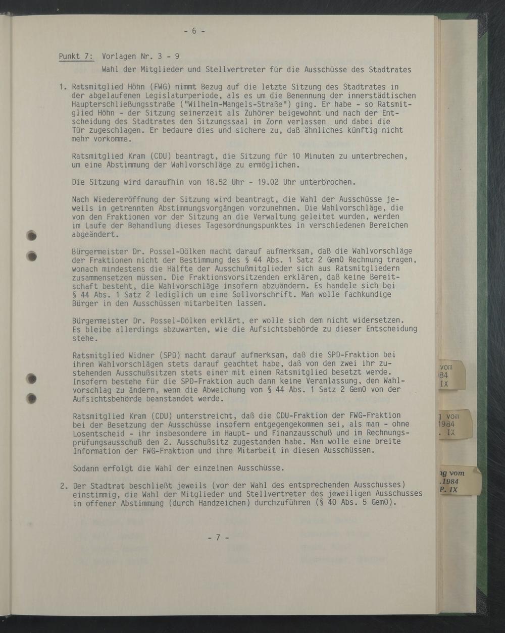 Punkt 7: Vorlagen Nr. 3 - 9