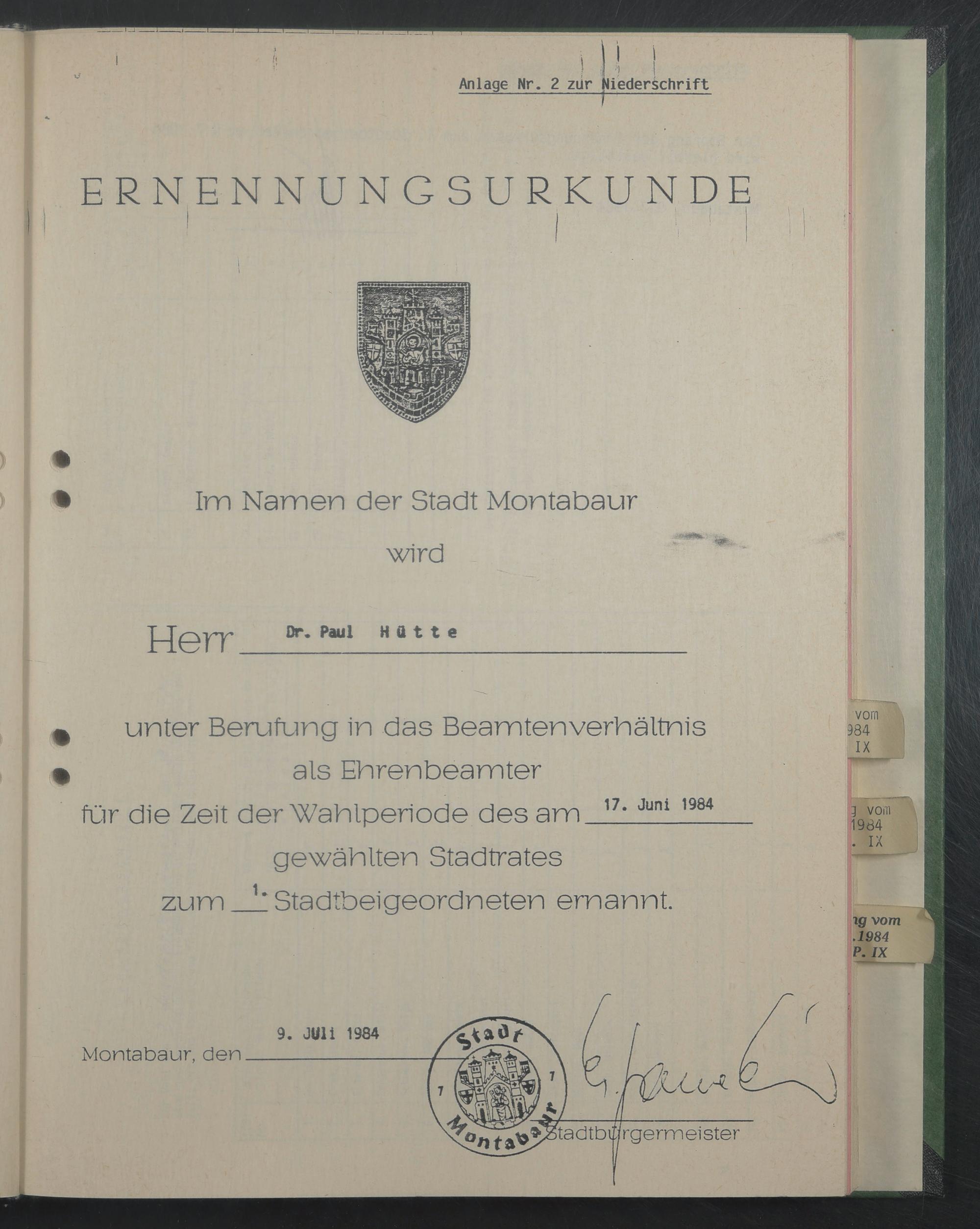 ERNENNUNGSURKUNDE