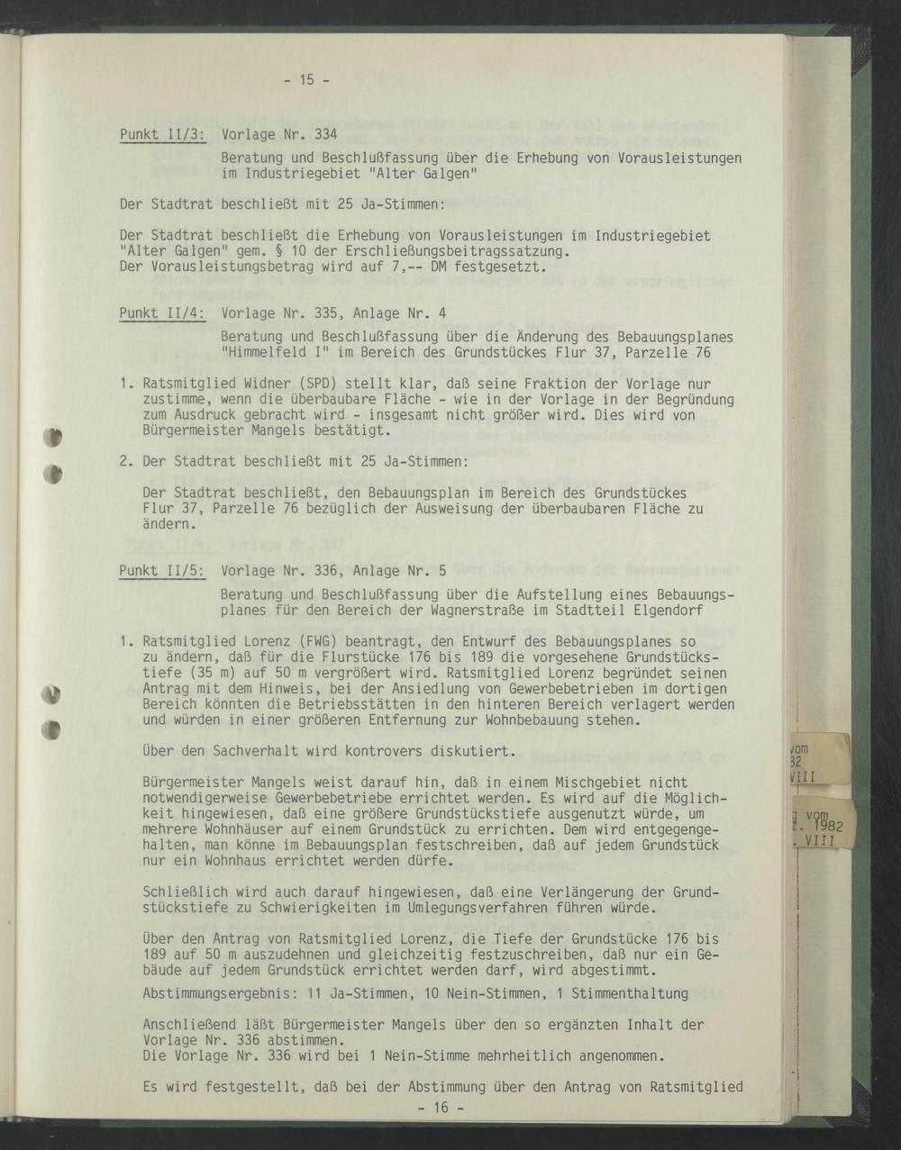 Anschließend läßt Bürgermeister Mangels über den so ergänzten Inhalt der Vorlage Nr. 336 abstimmen.