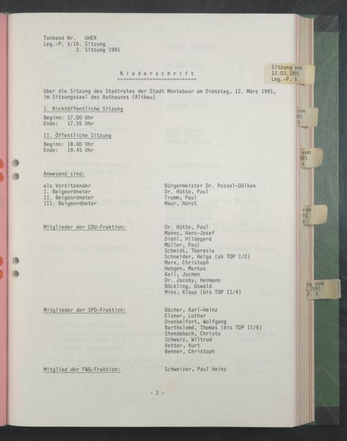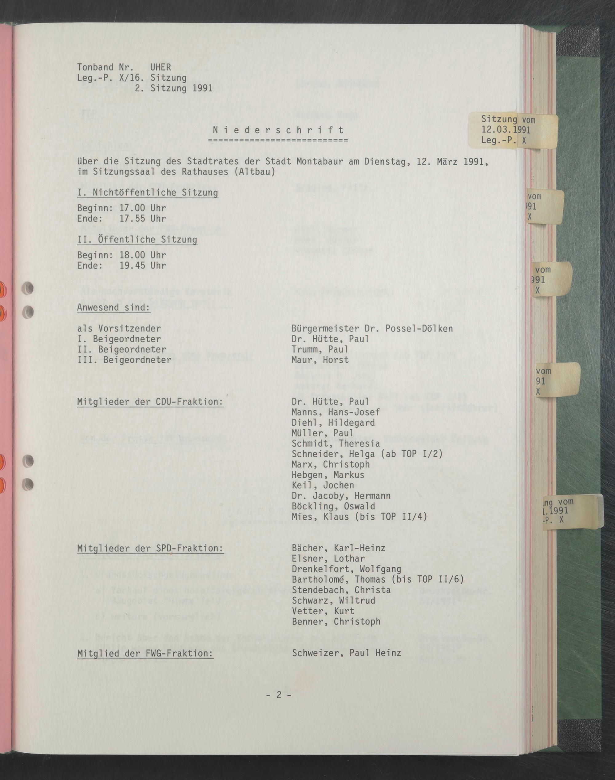 über die Sitzung des Stadtrates der Stadt Montabaur am Dienstag, 12. März 1991, im Sitzungssaal des Rathauses (Altbau)