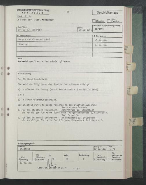 Nachwahl von Stadtteilausschußmitgliedern