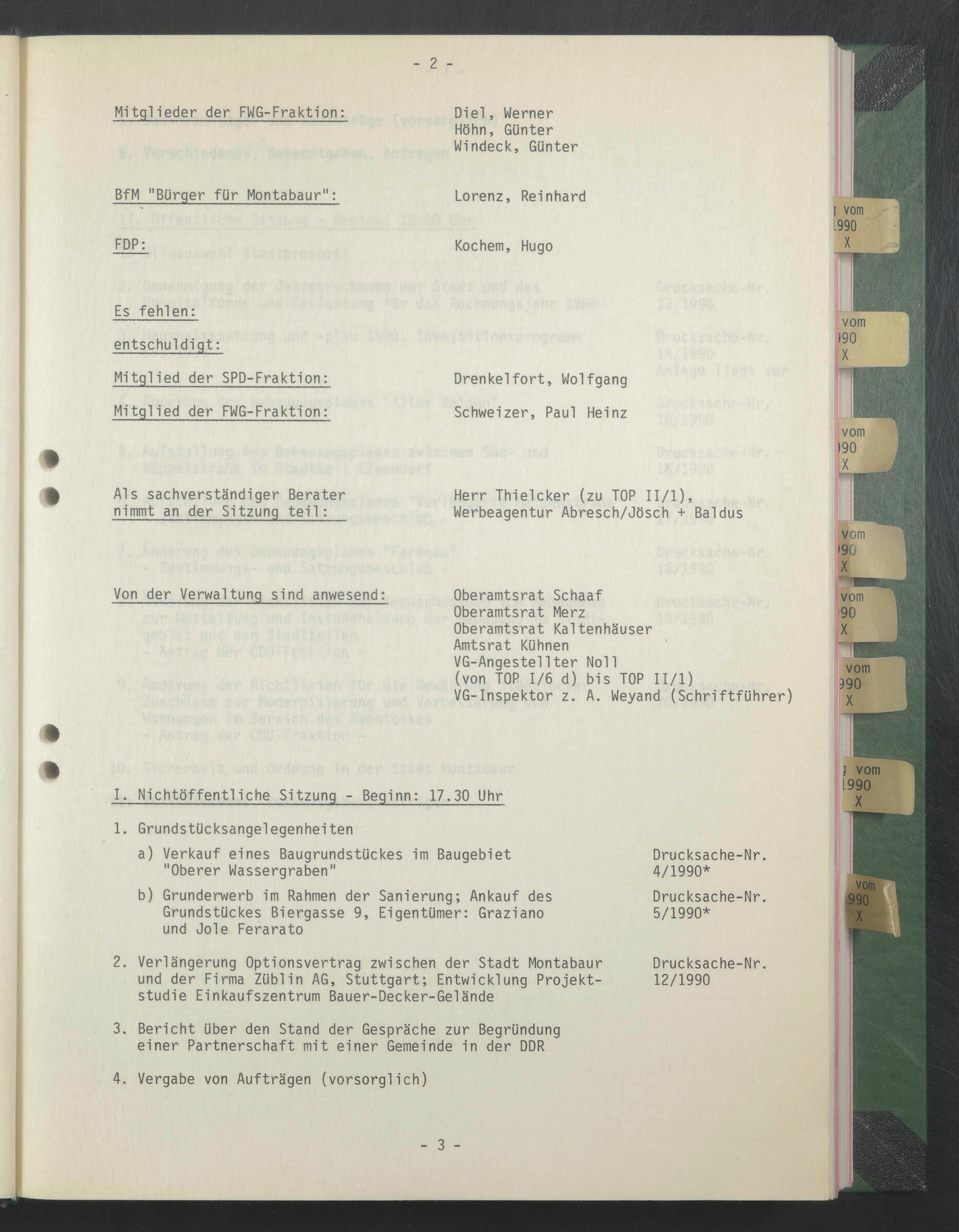 Oberamtsrat Merz Oberamtsrat Kaltenhäuser Amtsrat Kühnen VG-Angestellter Noll (von TOP 1/6 d) bis TOP 11/1)