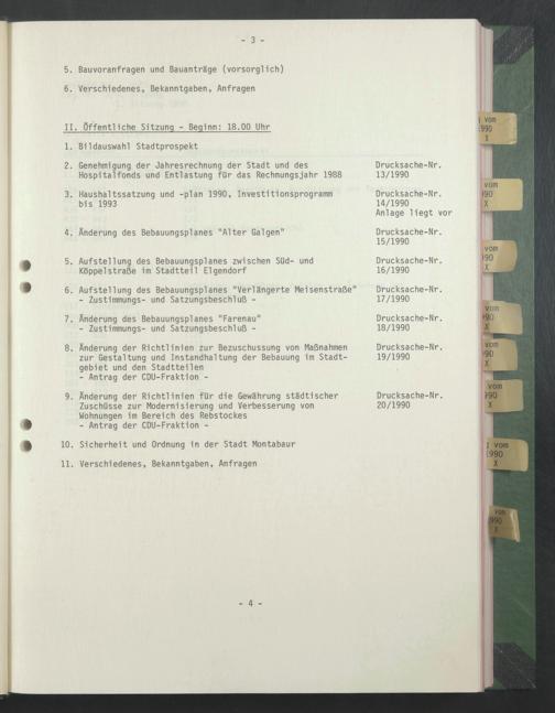 3. Haushaltssatzung und -plan 1990, Investitionsprogramm bis 1993