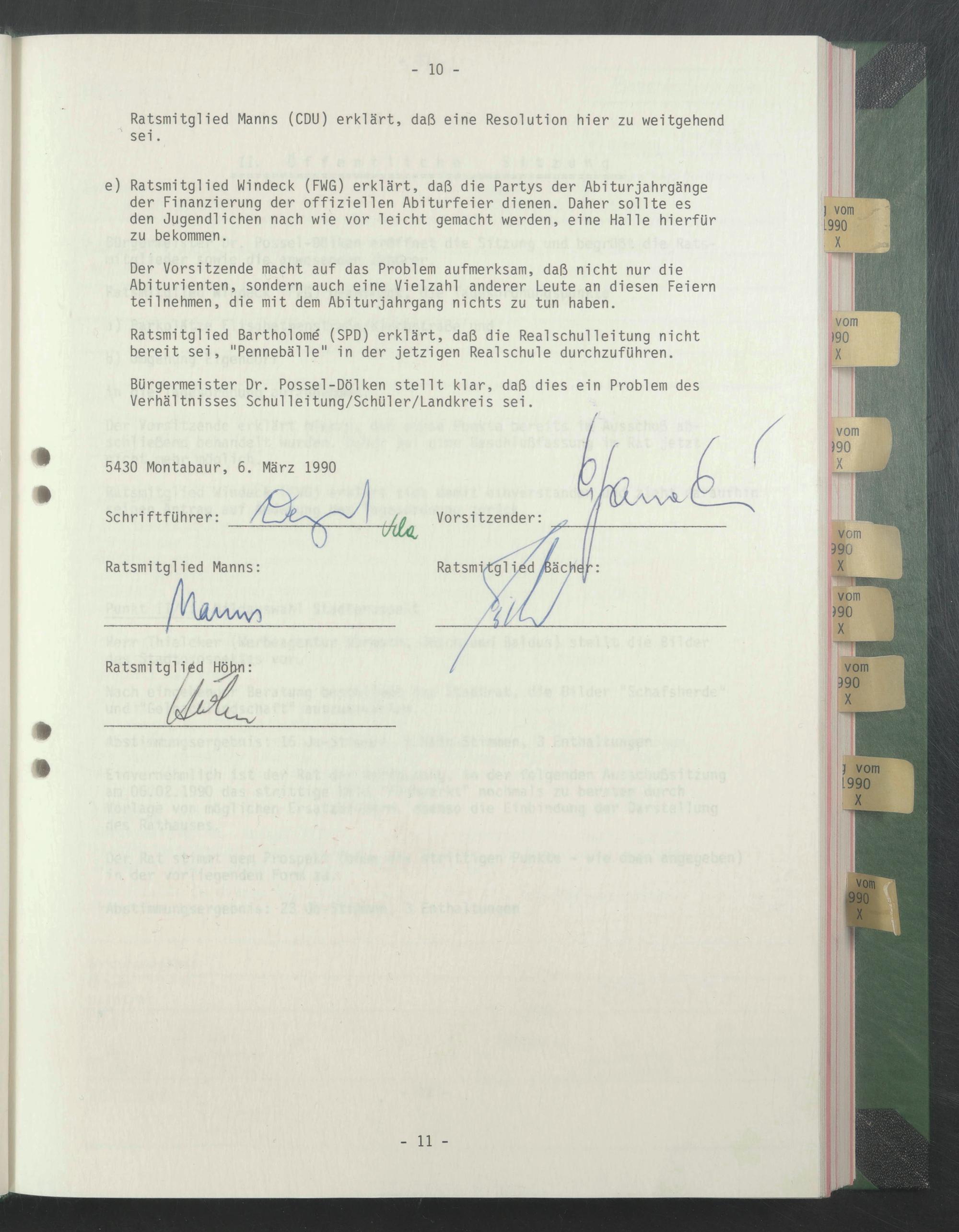Bürgermeister Dr. Possel-Dölken stellt klar, daß dies ein Problem des Verhältnisses Schulleitung/Schüler/Landkreis sei.