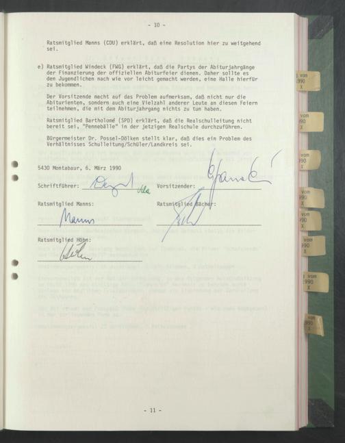 Ratsmitglied Bartholome (SPD) erklärt, daß die Real Schulleitung nicht bereit sei, "Pennebälle" in der jetzigen Realschule durchzuführen.