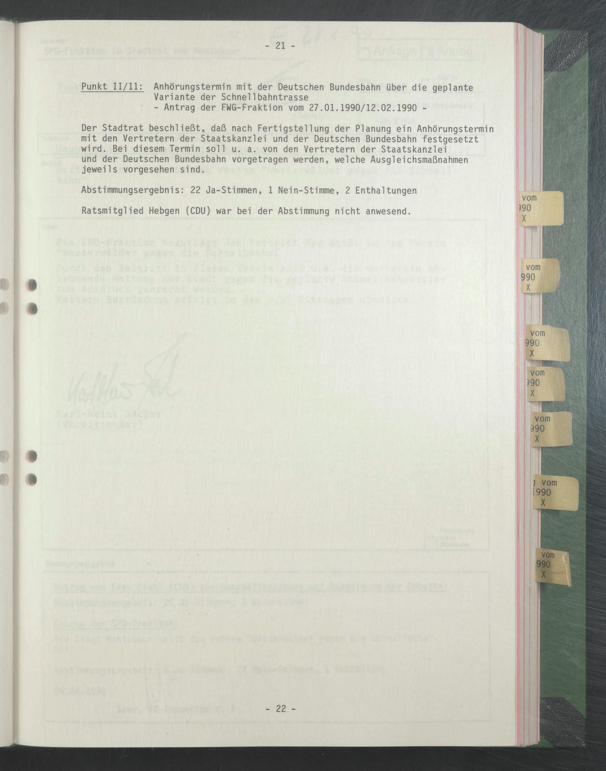 Punkt 11/11: Anhörungstermin mit der Deutschen Bundesbahn über die geplante