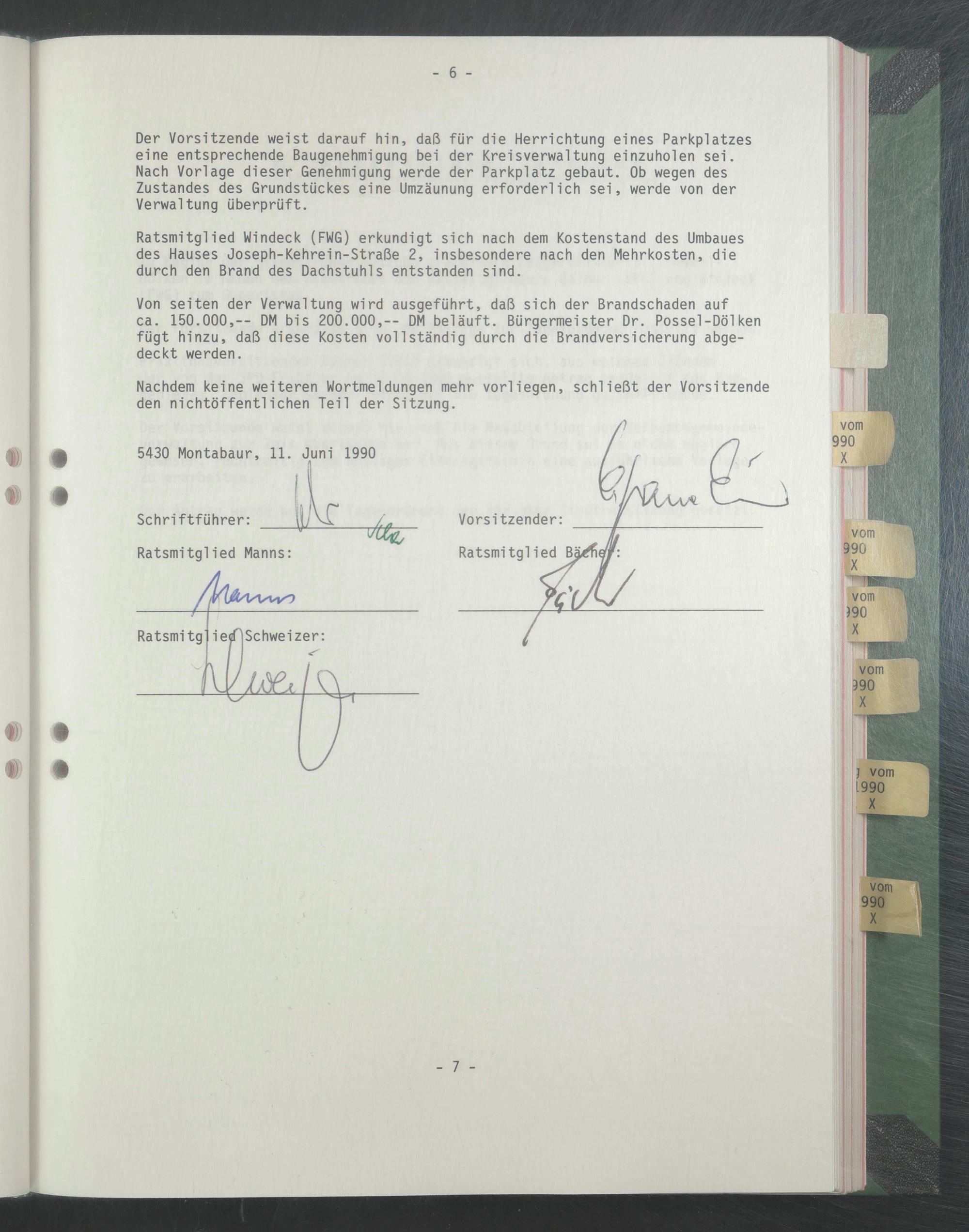 Von seiten der Verwaltung wird ausgeführt, daß sich der Brandschaden auf ca. 150.000,-- DM bis 200.000,-- DM beläuft. Bürgermeister Dr. Possel-Dölken fügt hinzu, daß diese Kosten vollständig durch die Brandversicherung abgedeckt werden.