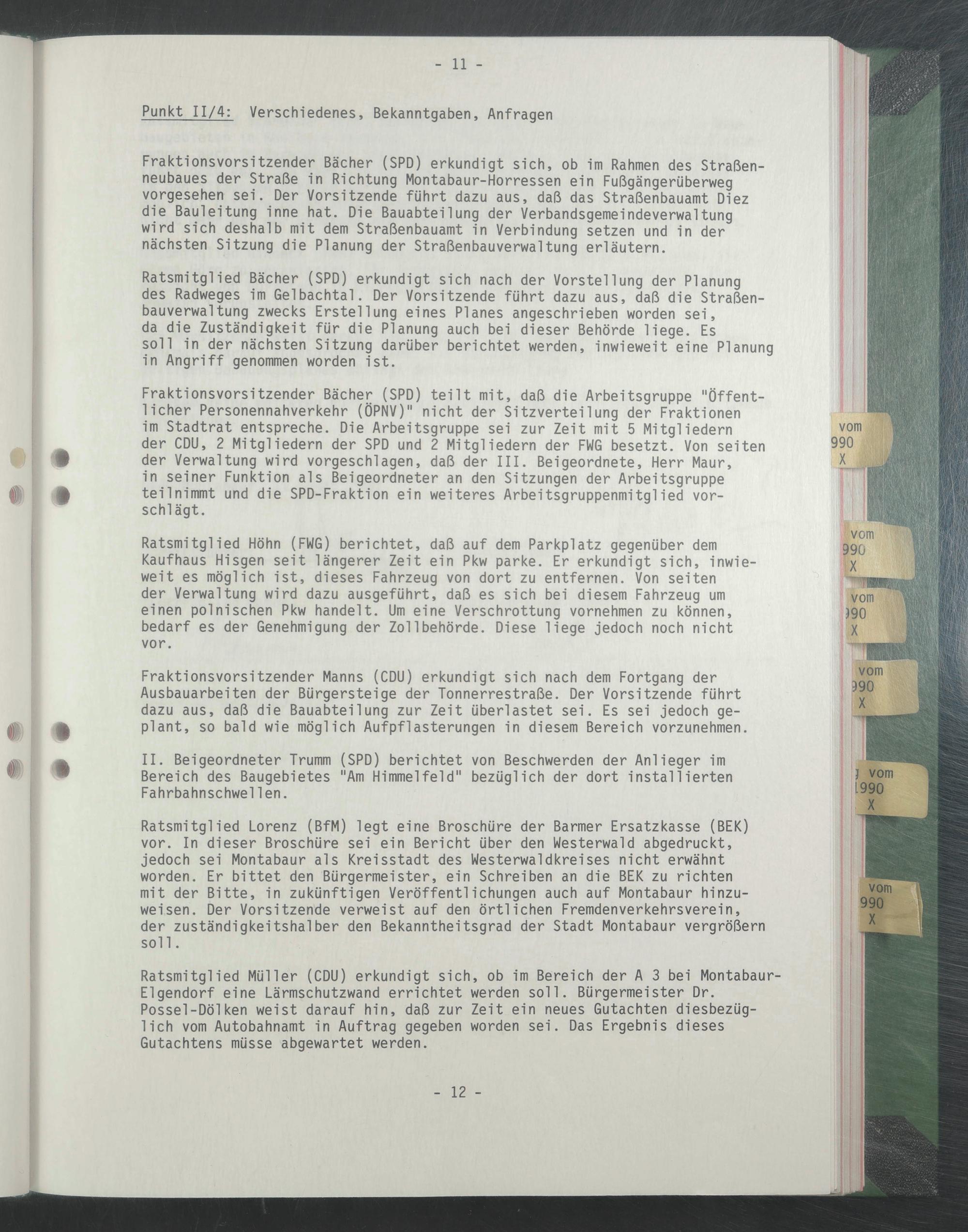 Ratsmitglied Bächer (SPD) erkundigt sich nach der Vorstellung der Planung des Radweges im Gelbachtal. Der Vorsitzende führt dazu aus, daß die Straßenbauverwaltung zwecks Erstellung eines Planes angeschrieben worden sei, da die Zuständigkeit für die Planung auch bei dieser Behörde liege. Es soll in der nächsten Sitzung darüber berichtet werden, inwieweit eine Planung in Angriff genommen worden ist.
