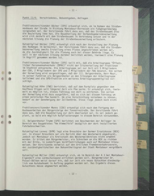 Fraktionsvorsitzender Bacher (SPD) erkundigt sich, ob im Rahmen des Straßenneubaues der Straße in Richtung Montabaur-Horressen ein Fußgängerüberweg vorgesehen sei. Der Vorsitzende führt dazu aus, daß das Straßenbauamt Diez die Bauleitung inne hat. Die Bauabteilung der Verbandsgemeindeverwaltung wird sich deshalb mit dem Straßenbauamt in Verbindung setzen und in der nächsten Sitzung die Planung der Straßenbauverwaltung erläutern.