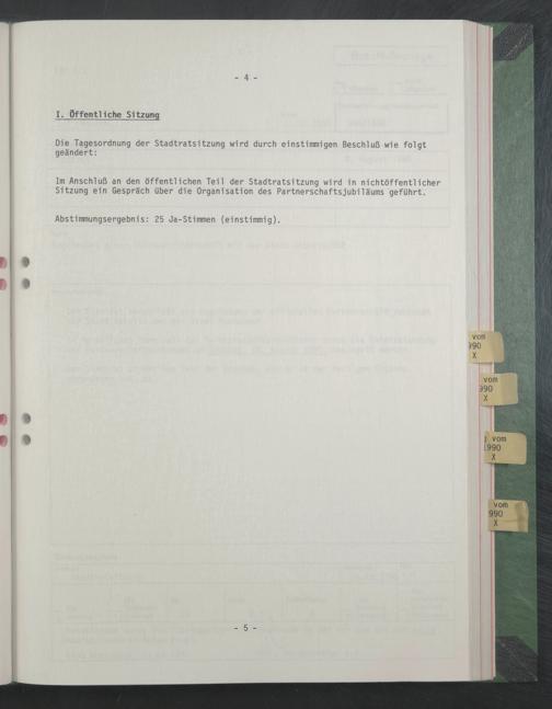 Im Anschluß an den öffentlichen Teil der Stadtratsitzung wird ln nichtöffentlicher Sitzung ein Gespräch über die Organisation des Partnerschaftsjublläums geführt.