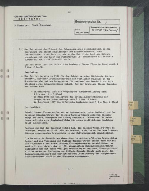 - im Juni/Juli 1987 die öffentiche Auslegung nach § 2 a Abs. 6 BBauG