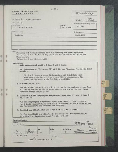 Beratung und Beschlußfassung über die Änderung des Bebauungsplanes "Bornweise II" im Stadtteil Eigendorf für das Flurstück Nr. 81 an der Mozartstraße