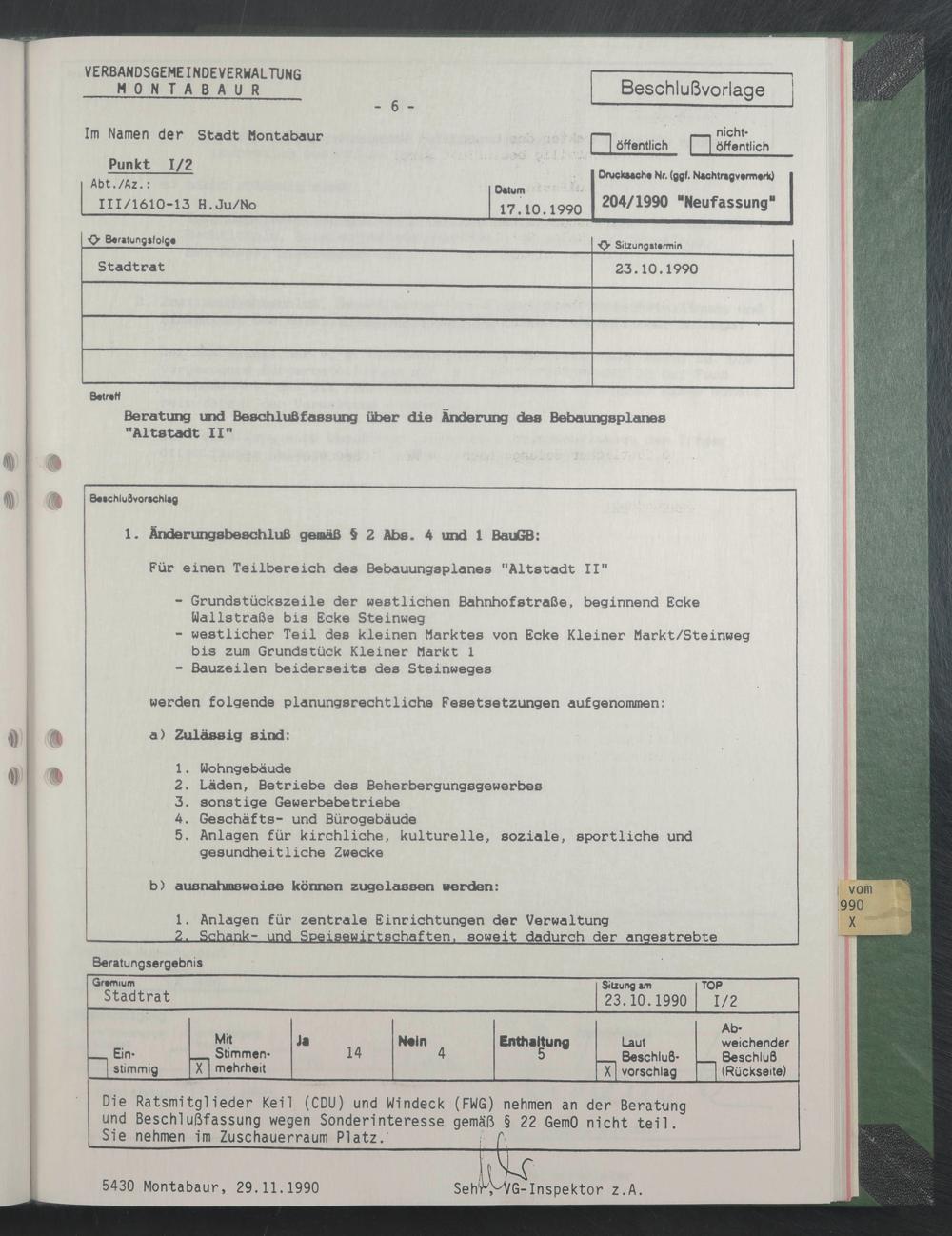 Beratung und Beschlußfassung über die Änderung des Bebaungsplanes "Altstadt II"