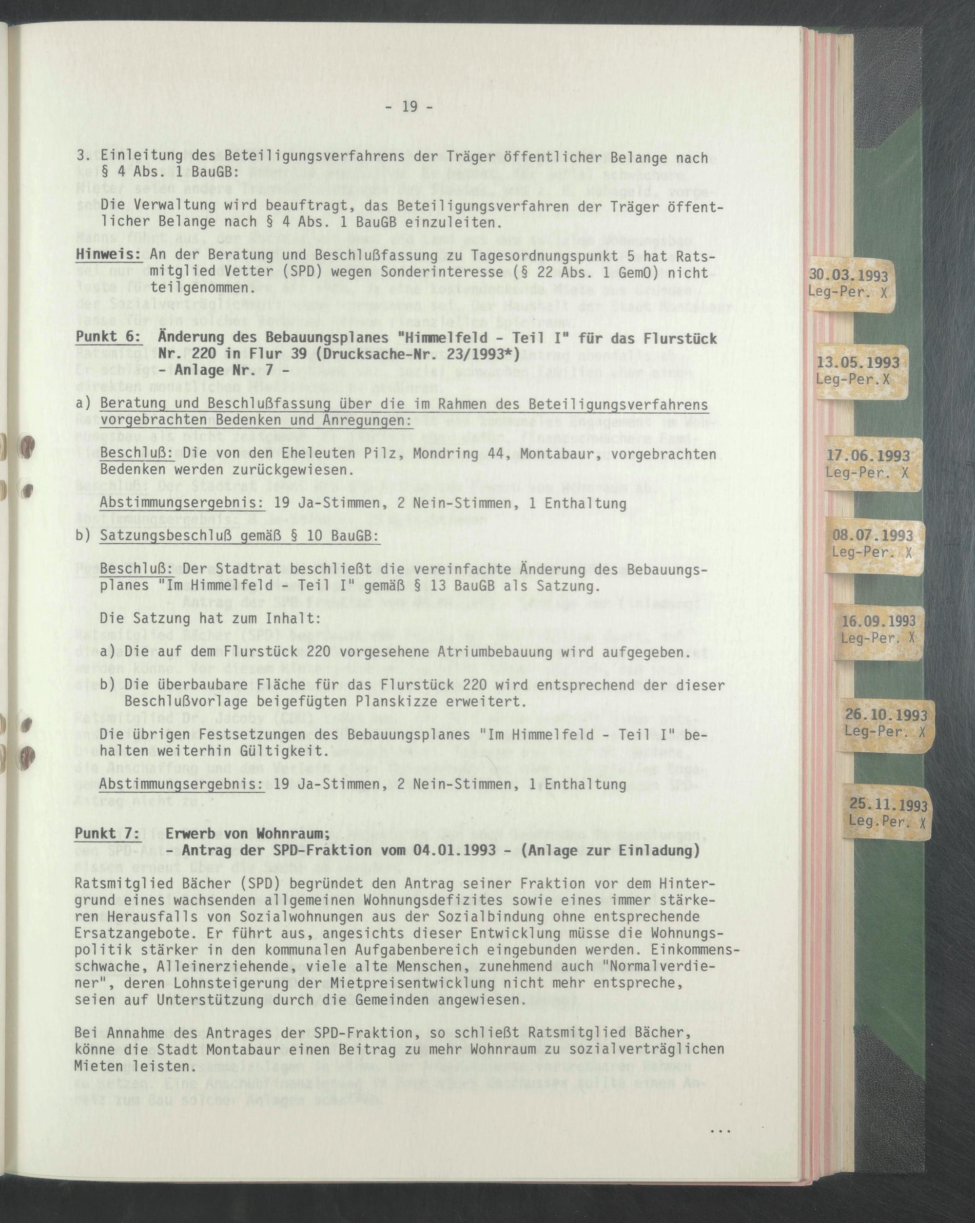 Beschluß: Die von den Eheleuten Pilz, Mondring 44, Montabaur, vorgebrachten Bedenken werden zurückgewiesen.