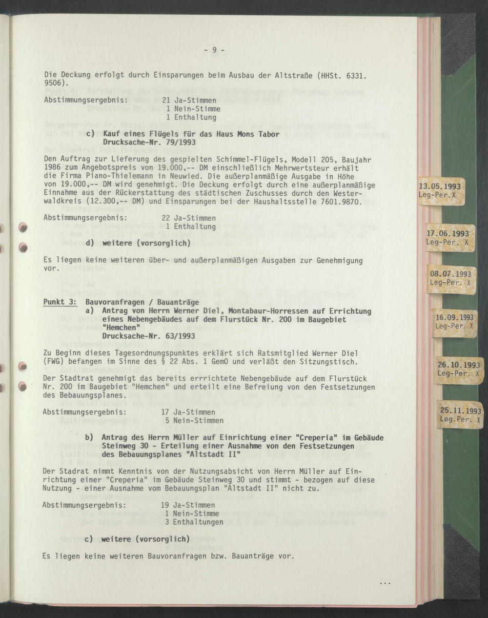 c) Kauf eines Flügels für das Haus Mons Tabor Drucksache-Nr. 79/1993