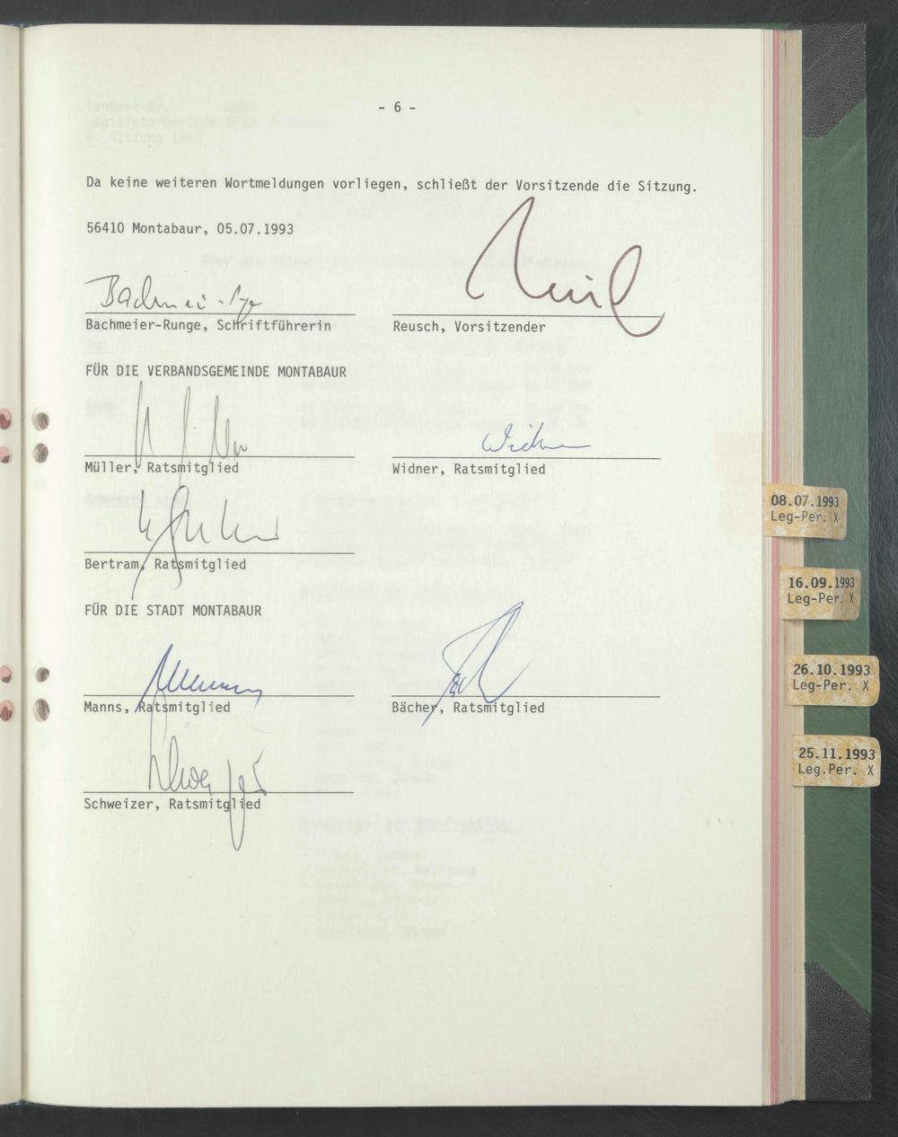 Da keine weiteren Wortmeldungen vorliegen, schließt der Vorsitzende die Sitzung, 56410 Montabaur, 05.07.1993