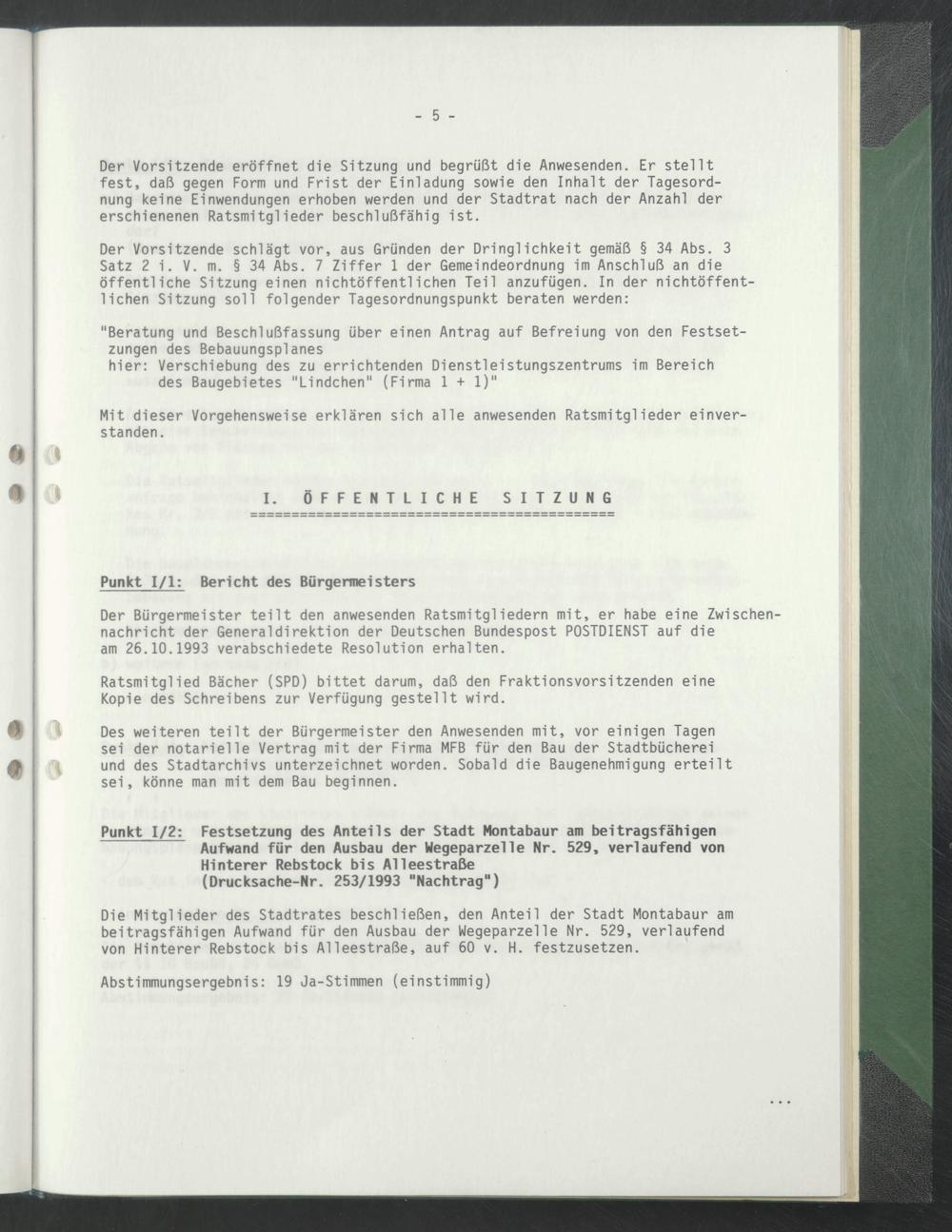 Punkt 1/2: Festsetzung des Anteils der Stadt Montabaur am beitragsfähigen Aufwand für den Ausbau der Wegeparzelle Nr. 529, verlaufend von Hinterer Rebstock bis Alleestraße (Drucksache-Nr. 253/1993 "Nachtrag")