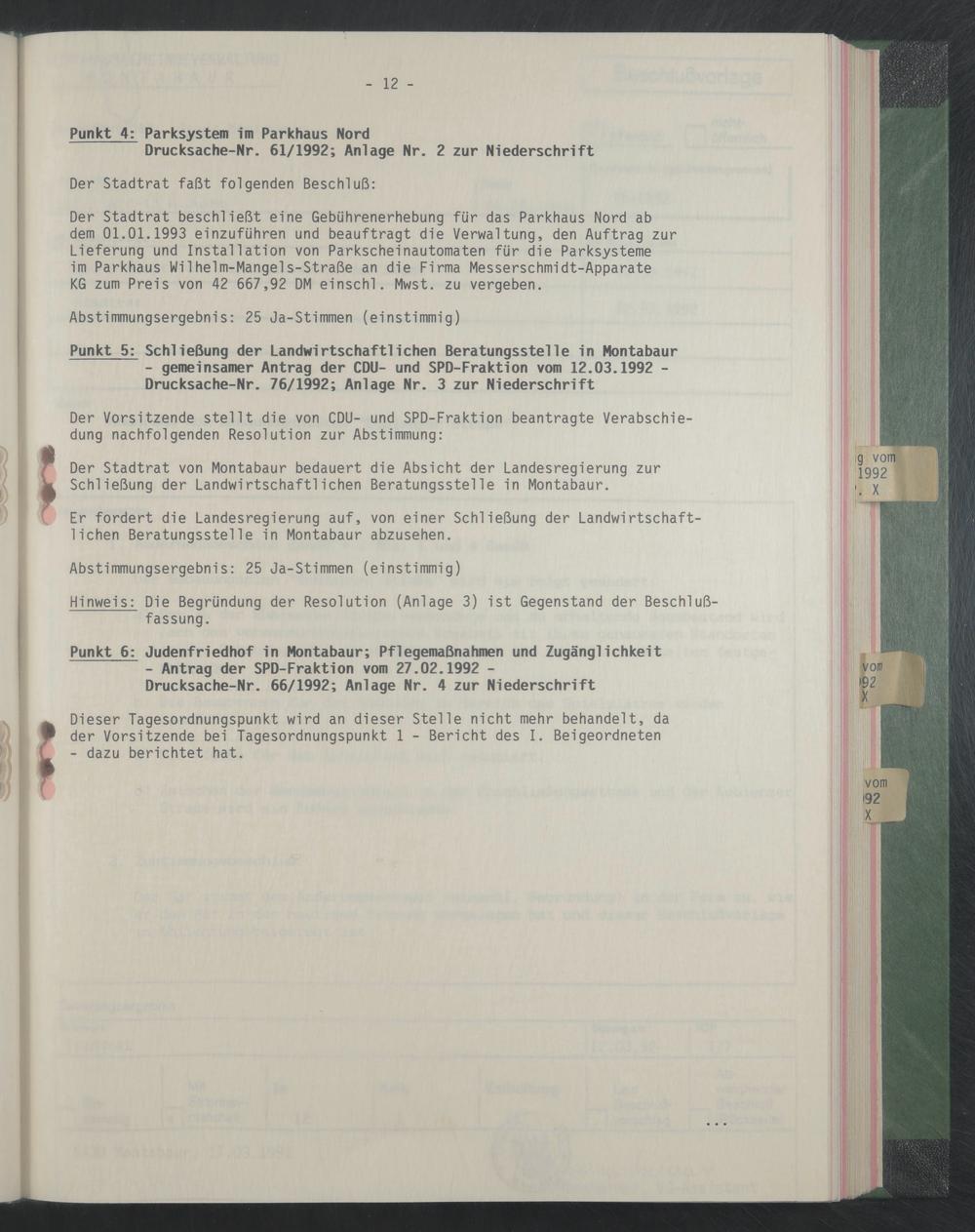 - gemeinsamer Antrag der CDU- und SPD-Fraktion vom 12.03.1992 - Drucksache-Nr. 76/1992; Anlage Nr. 3 zur Niederschrift