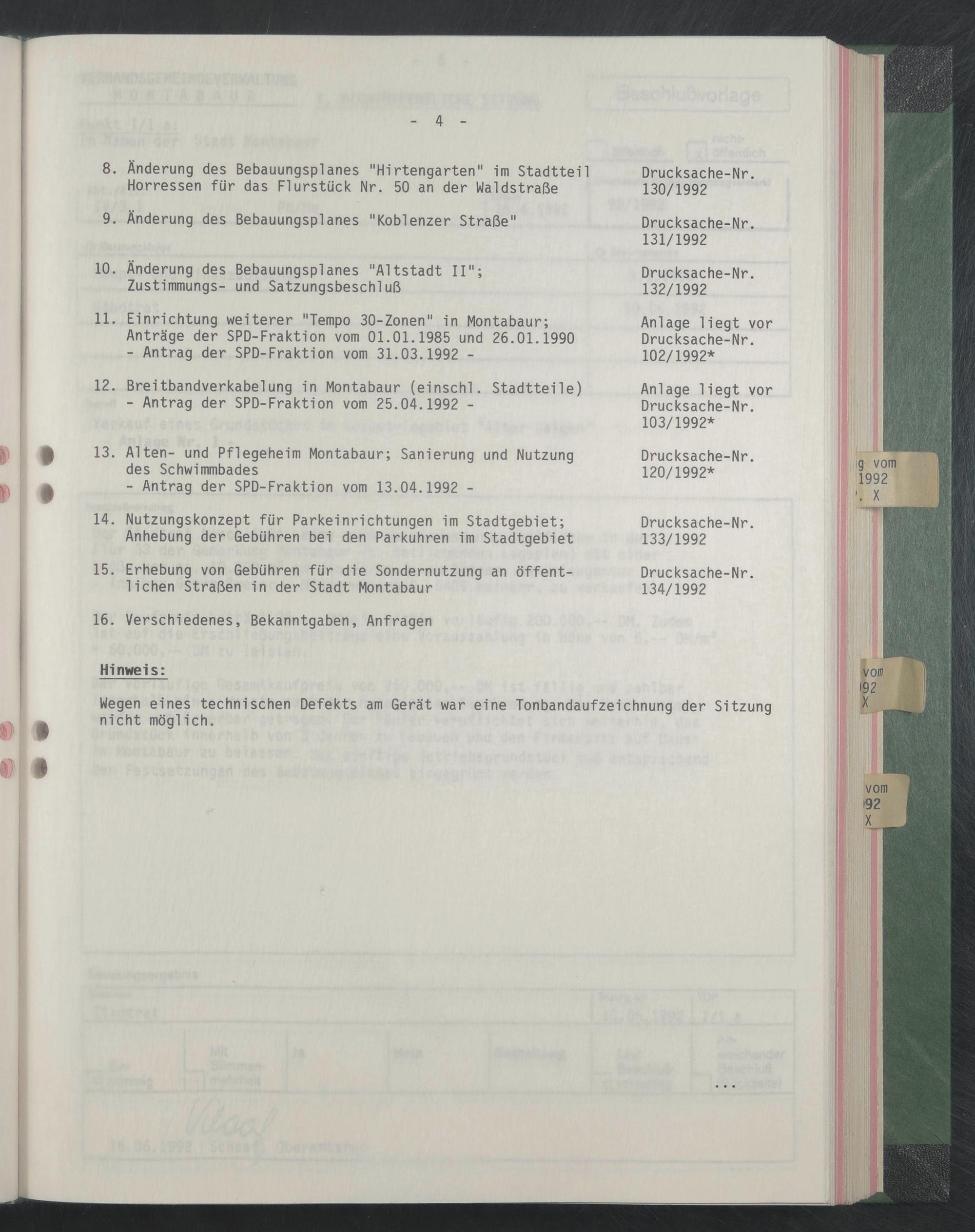 Wegen eines technischen Defekts am Gerät war eine Tonbandaufzeichnung der Sitzung nicht möglich.
