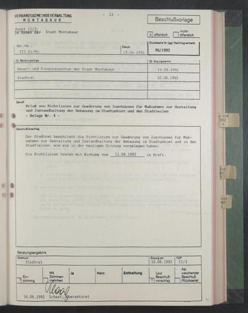 Der Stadtrat beschließt die Richtlinien zur Gewährung von Zuschüssen für Maßnahmen zur Gestaltung und Instandhaltung der Bebauung im Stadtgebiet und in den Stadtteilen, wie sie in der heutigen Sitzung Vorgelegen haben.