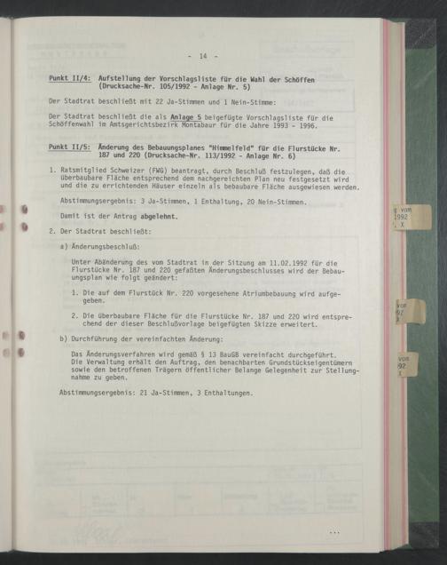 Punkt I1/4: Aufstellung der Vorschlagsliste für die Wahl der Schöffen (Drucksache-Nr. 105/1992 - Anlage Nr. 5)