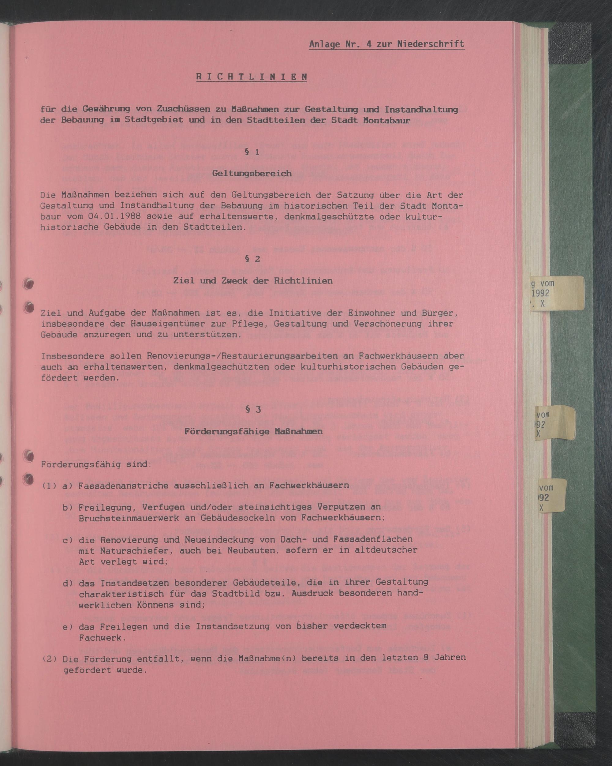 für die Gewährung von Zuschüssen zu Maßnahmen zur Gestaltung und Instandhaltung der Bebauung im Stadtgebiet und in den Stadtteilen der Stadt Montabaur