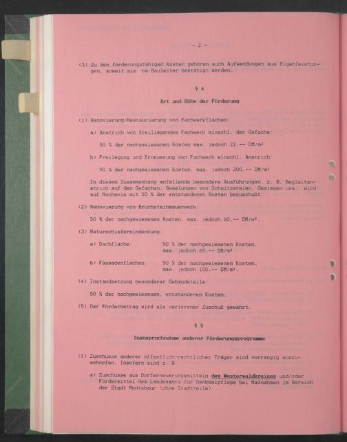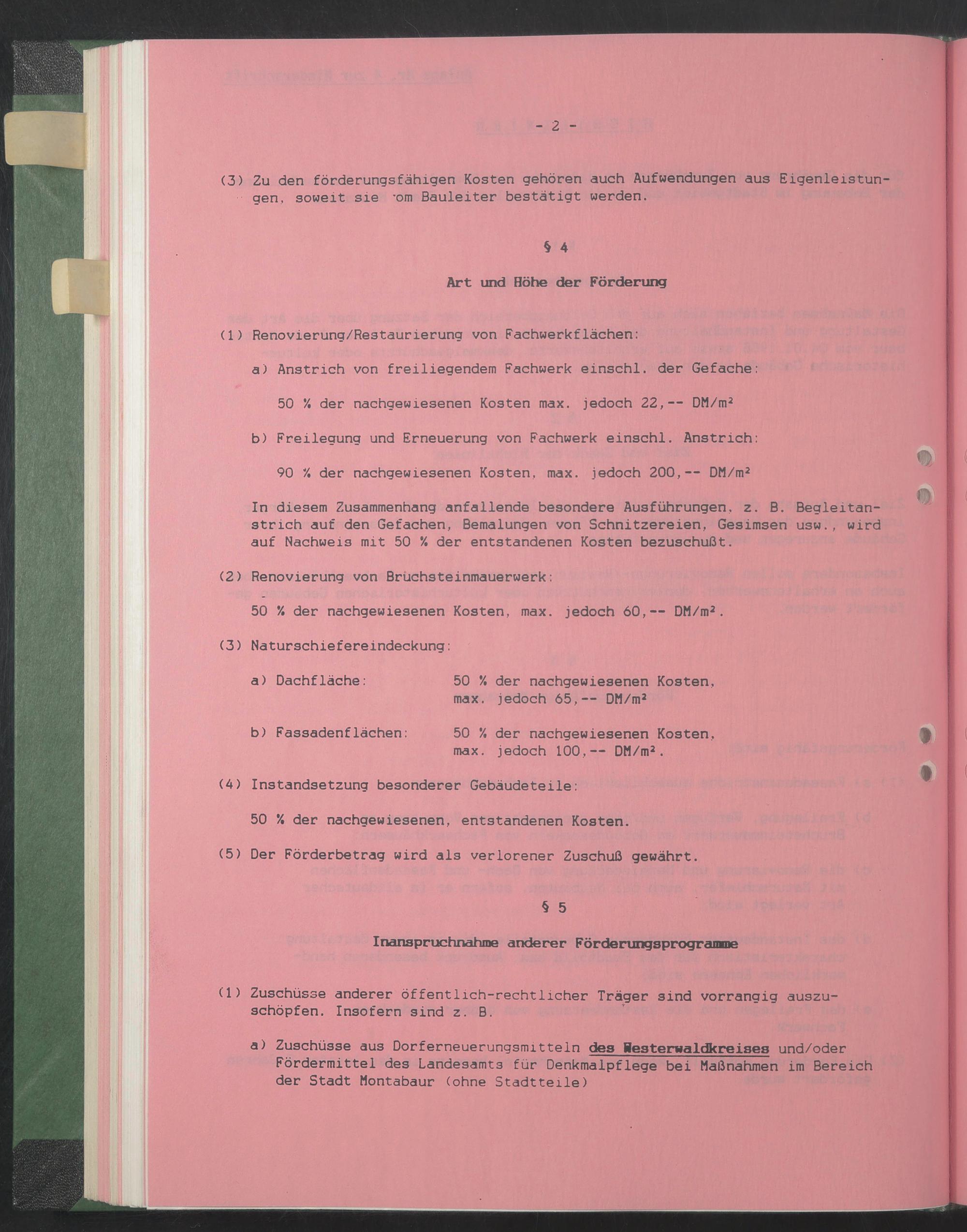 a) Zuschüsse aus Dorferneuerungsmitteln des Hesterwaldkreises und/oder Fördermittel des Landesamts für Denkmalpflege bei Maßnahmen im Bereich der Stadt Montabaur (ohne Stadtteile)